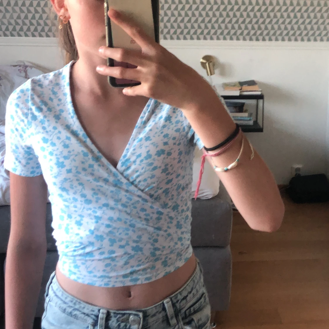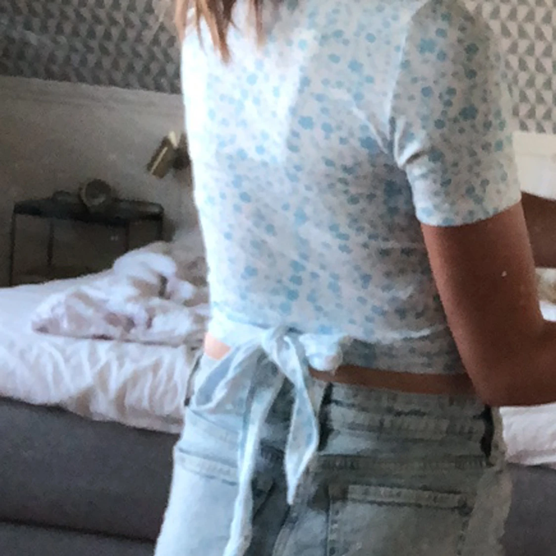 Jättesöt sommartopp från NewYorker. Står storlek xxs men eftersom man knyter själv så går det att justera storleken så skulle säga passa xxs-s.