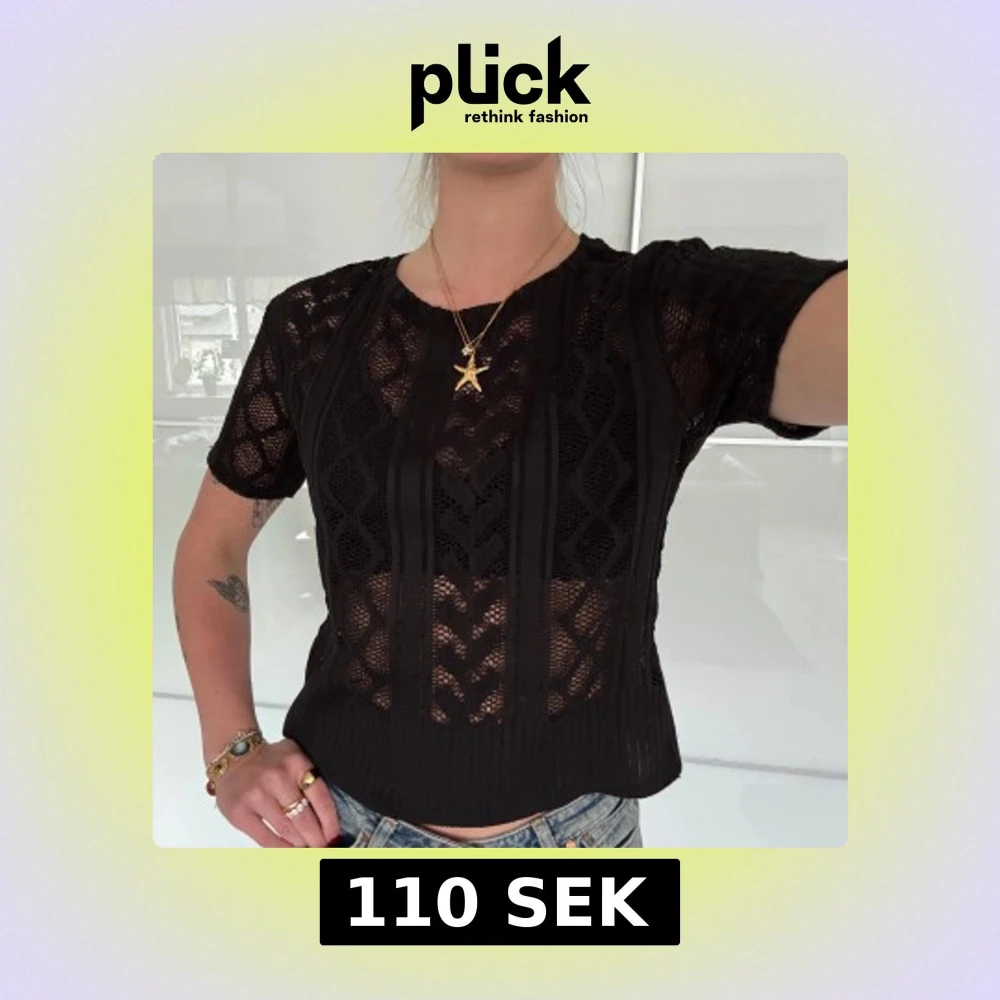 En svart t-shirt i spets med mönster. Blusen har rund halsringning och är lätt transparent, perfekt att styla med olika accessoarer!✨(står att den är L men jag bär alltid S eller XS o den passar perfekt för mig)