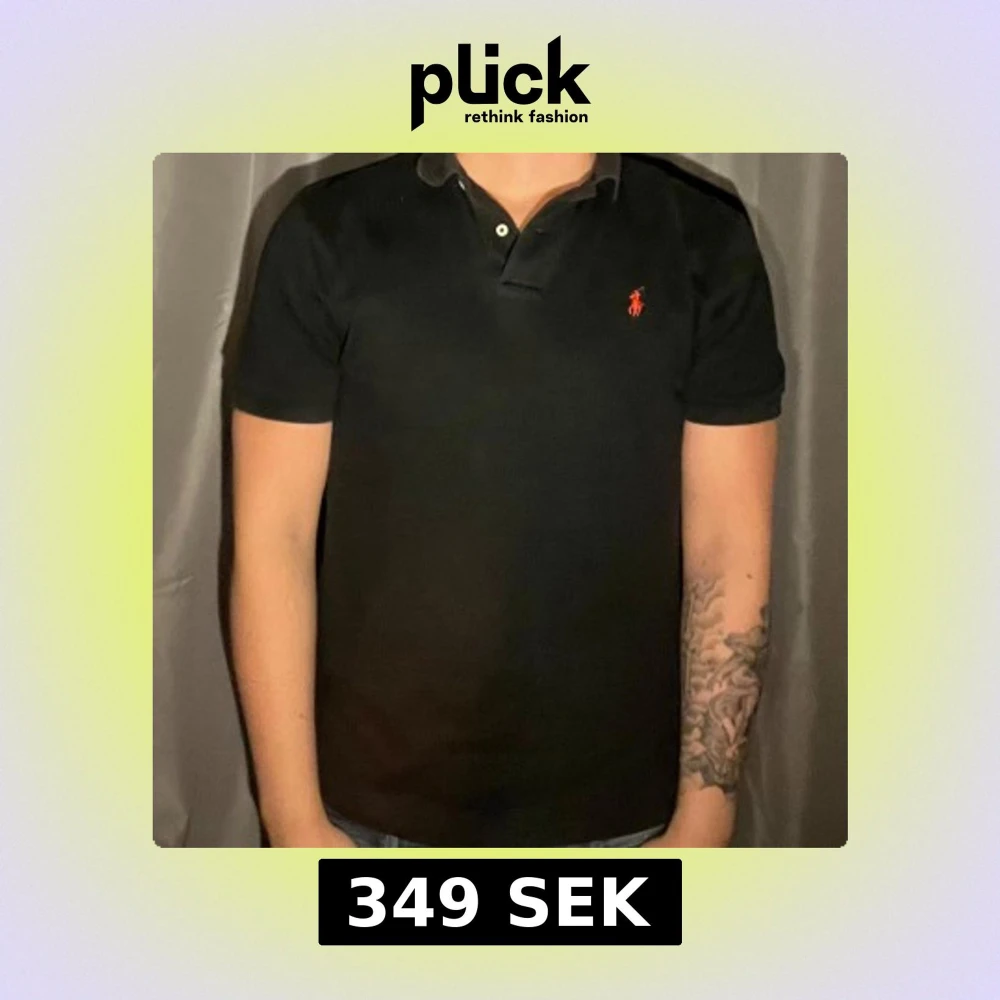 Sommaplagg!🌞Klassisk svart pikétröja från Polo Ralph Lauren med röd broderad logga på bröstet. Tröjan har korta ärmar, krage och knappar vid halsen. Tillverkad i 100% bomull för en skön och stilren känsla.