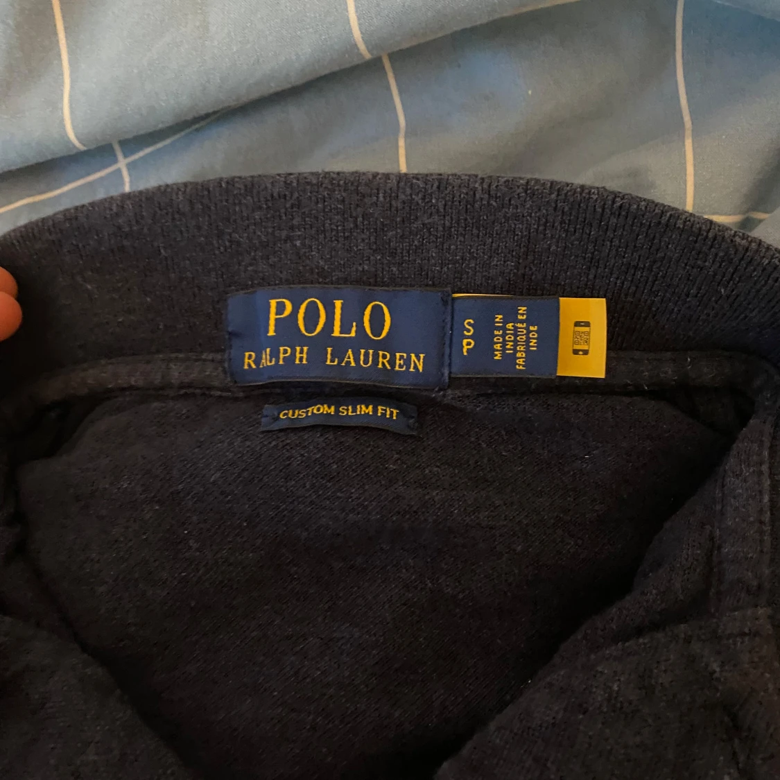 Säljer en mörkblå pikétröja från Polo Ralph Lauren med klassisk krage och två knappar framtill. Tröjan har en broderad logga på bröstet och är i modellen custom slim fit. Perfekt för en stilren och avslappnad look. Säljer eftersom den är för liten