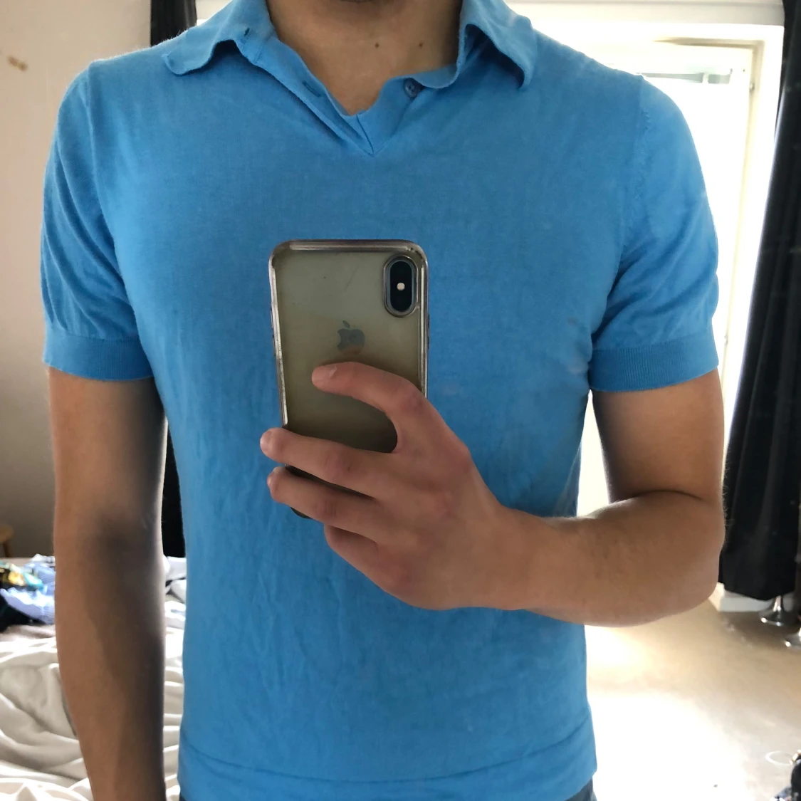 Blå pikétröja från Riley med klassisk krage och korta ärmar. Pikén är i storlek S men skulle säga att den sitter mer som xs. Använd fåtal gånger!