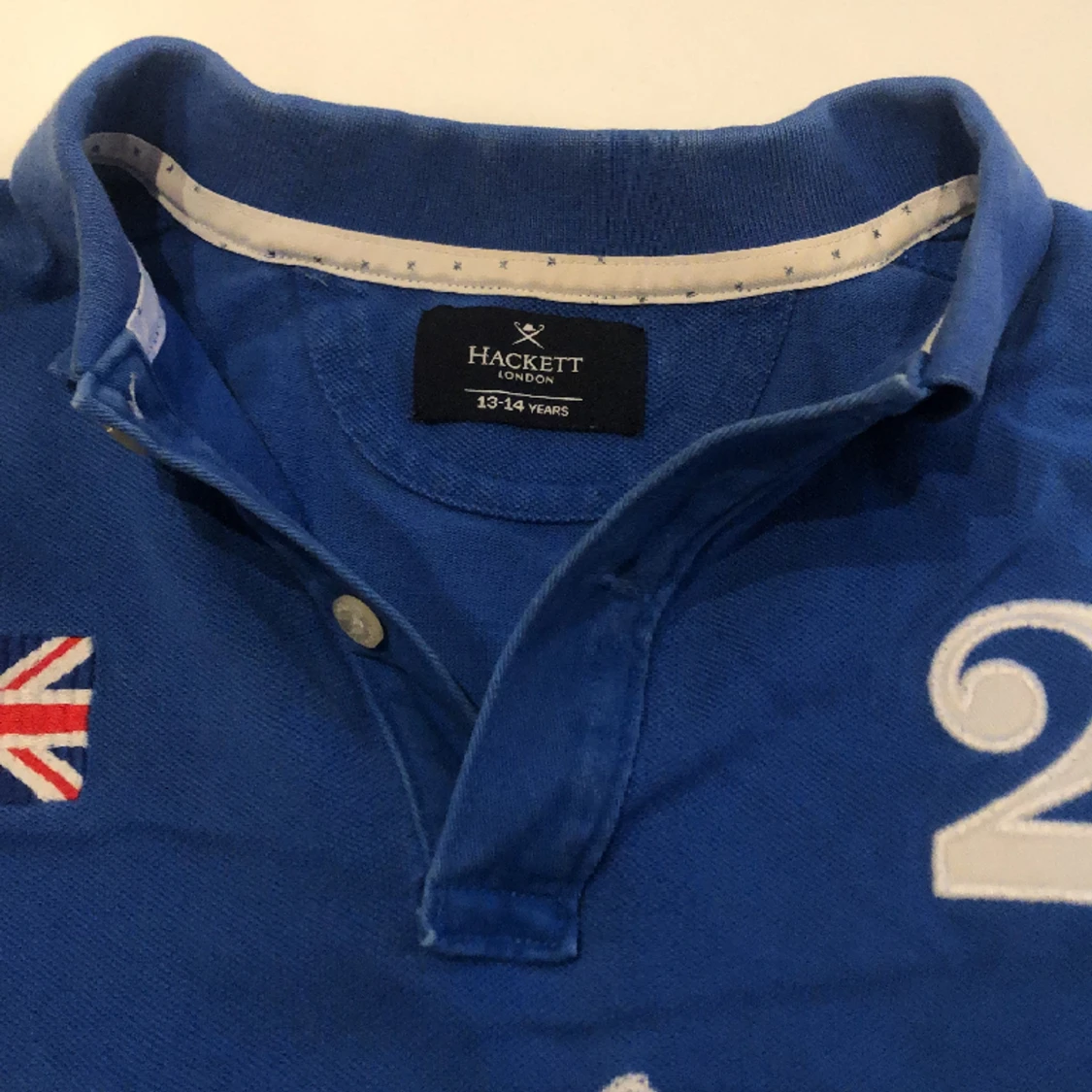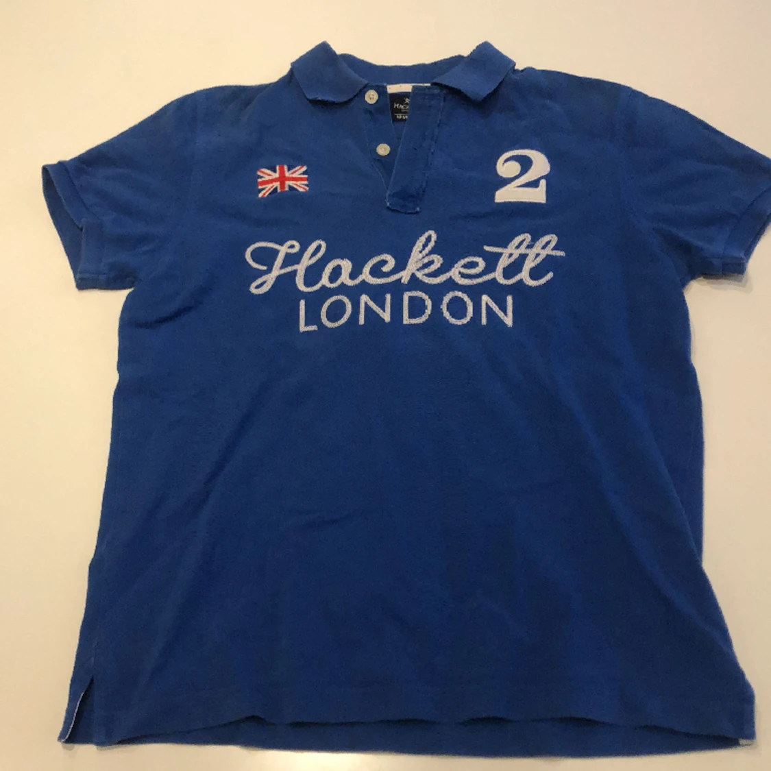 Pikétröja från Hackett med små slitningar längst kragen som visas på sista bilden.