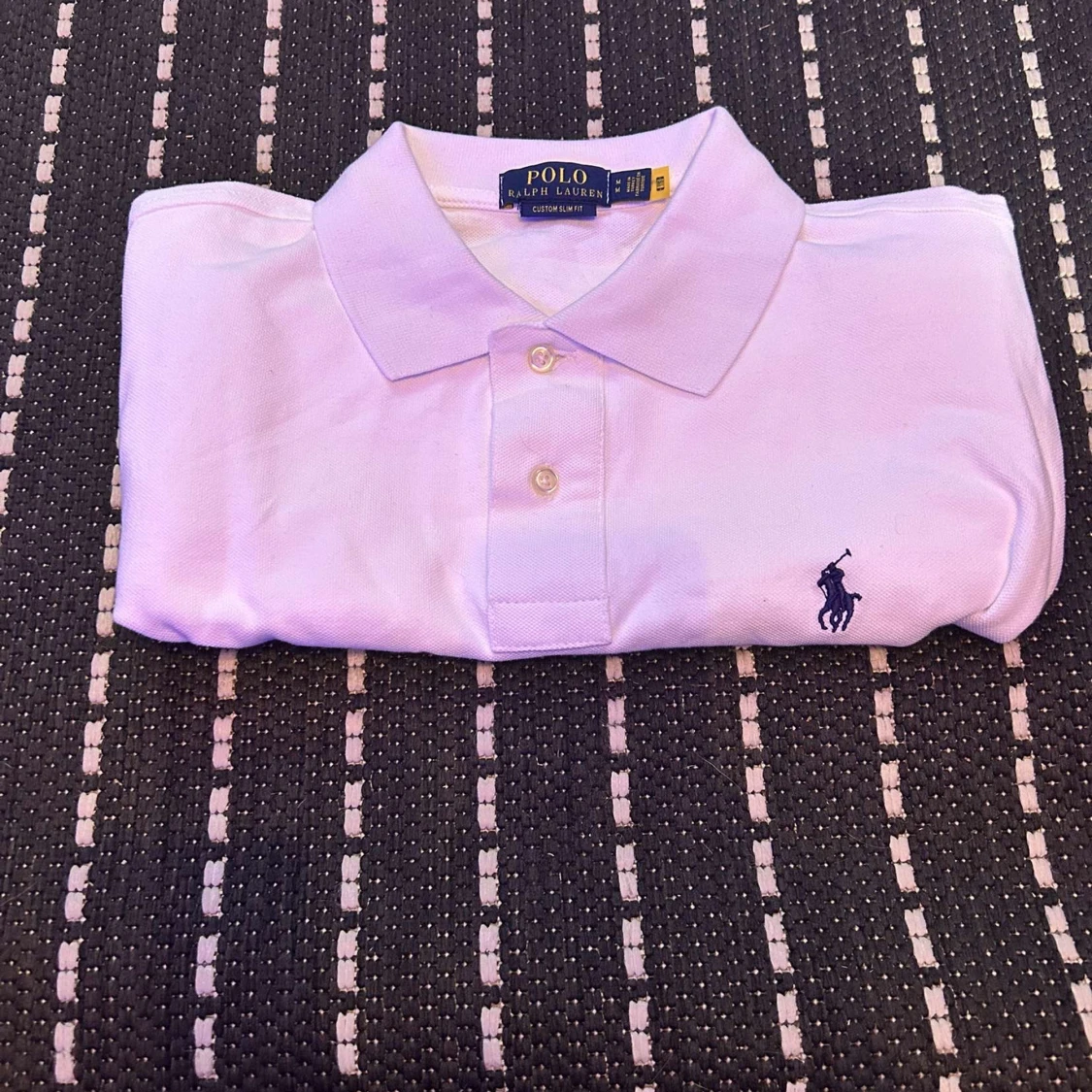 Klassisk vit pikétröja från Polo Ralph Lauren med korta ärmar och broderad marinblå logga på bröstet. Tröjan har krage och två knappar framtill. Tillverkad i mjuk bomull för en bekväm känsla och snygg passform.