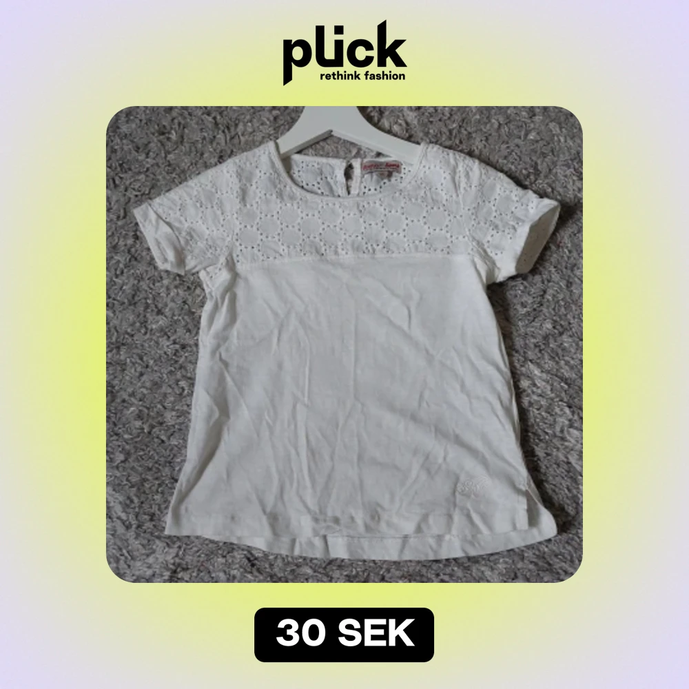 Vit tröja med spets detalj från lager 157. Strorlek 130 men passar som en xxs ungefär. Super fint skick men säljer då den tyvärr är för liten💕