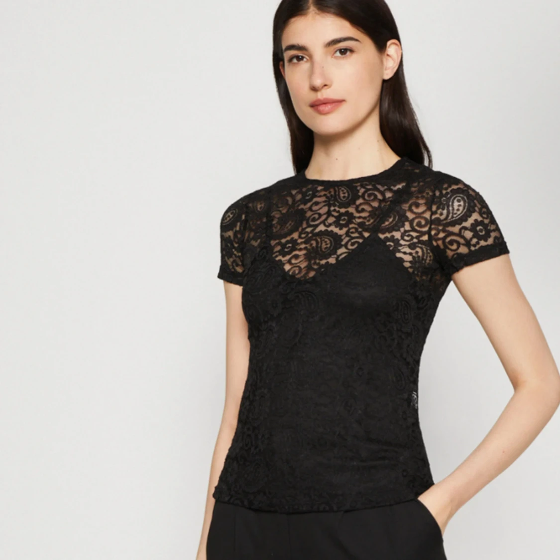 Säljer denna fina spets t shirten då den inte kommer till användning! Dock hittar jag inte linnet till som är under spets t shirten🫶🏽 slutsåld på Zalando