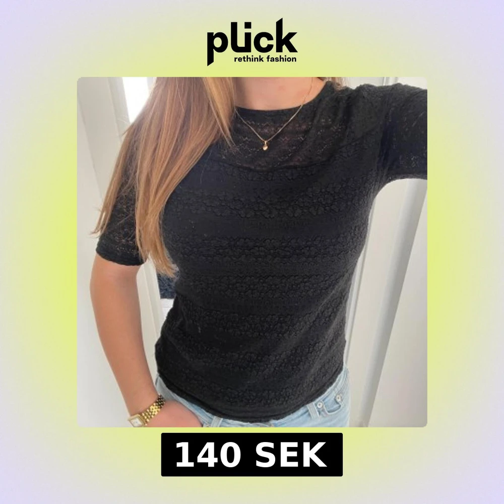 Svart tshit med spets fram (vanligt material bak). Står ingen storlek men skulle säga S. Skulle kunna passa M beroende på hur man vill ha passformen. Bra skick!