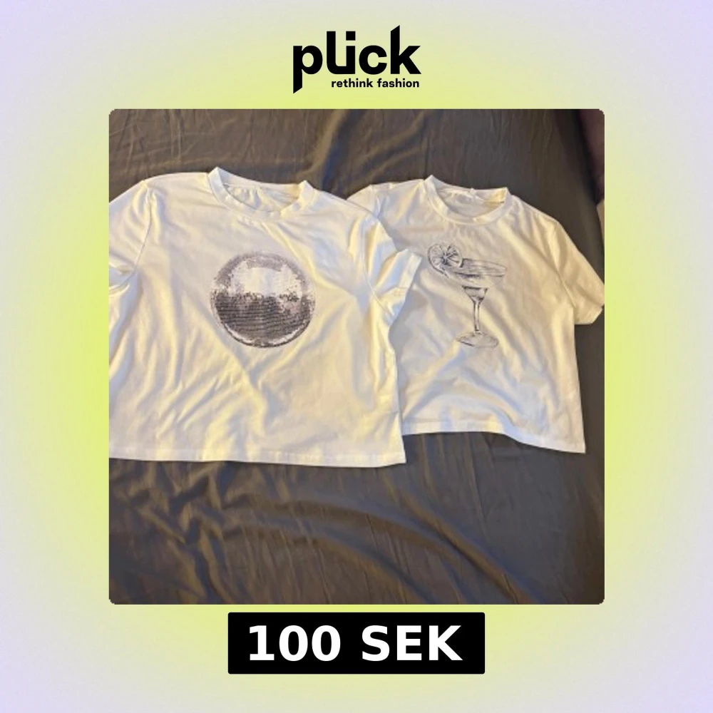 Två vita t-shirts med unika tryck. Dom är jätte coola men kommer inget till andvädning. Skriv om du vill ha fler bilder!!💕