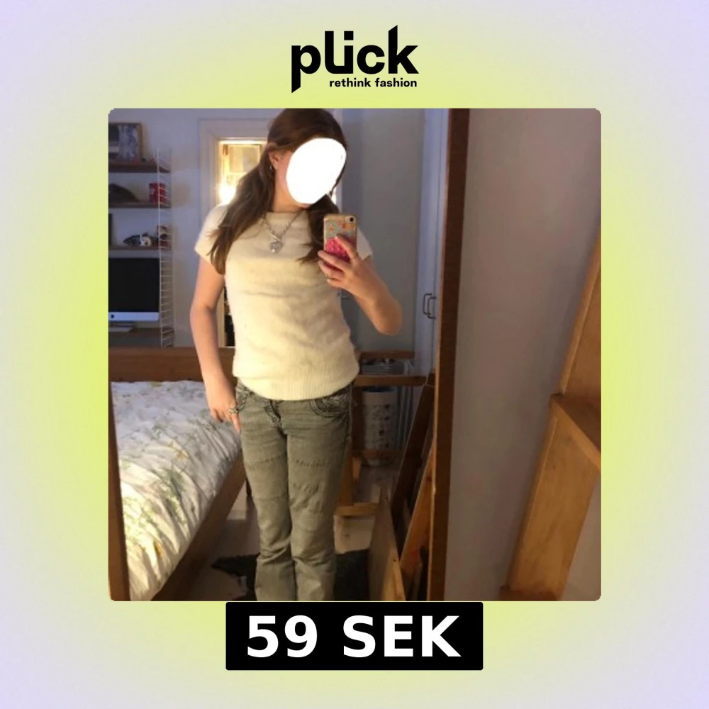 JĂ€ttefin mjuk stickad kortĂ€rmad tröja.Den har smĂ„ diamanter pĂ„ som ger en vĂ€ldigt fin vibe.Den har lite gul defekt pĂ„ framsidan som man kan se pĂ„ bild 5,som kanske gĂ„r bort i tvĂ€tten.â€ïžTryck gĂ€rna pĂ„ köp nu eller hör av dig om du intresserad!