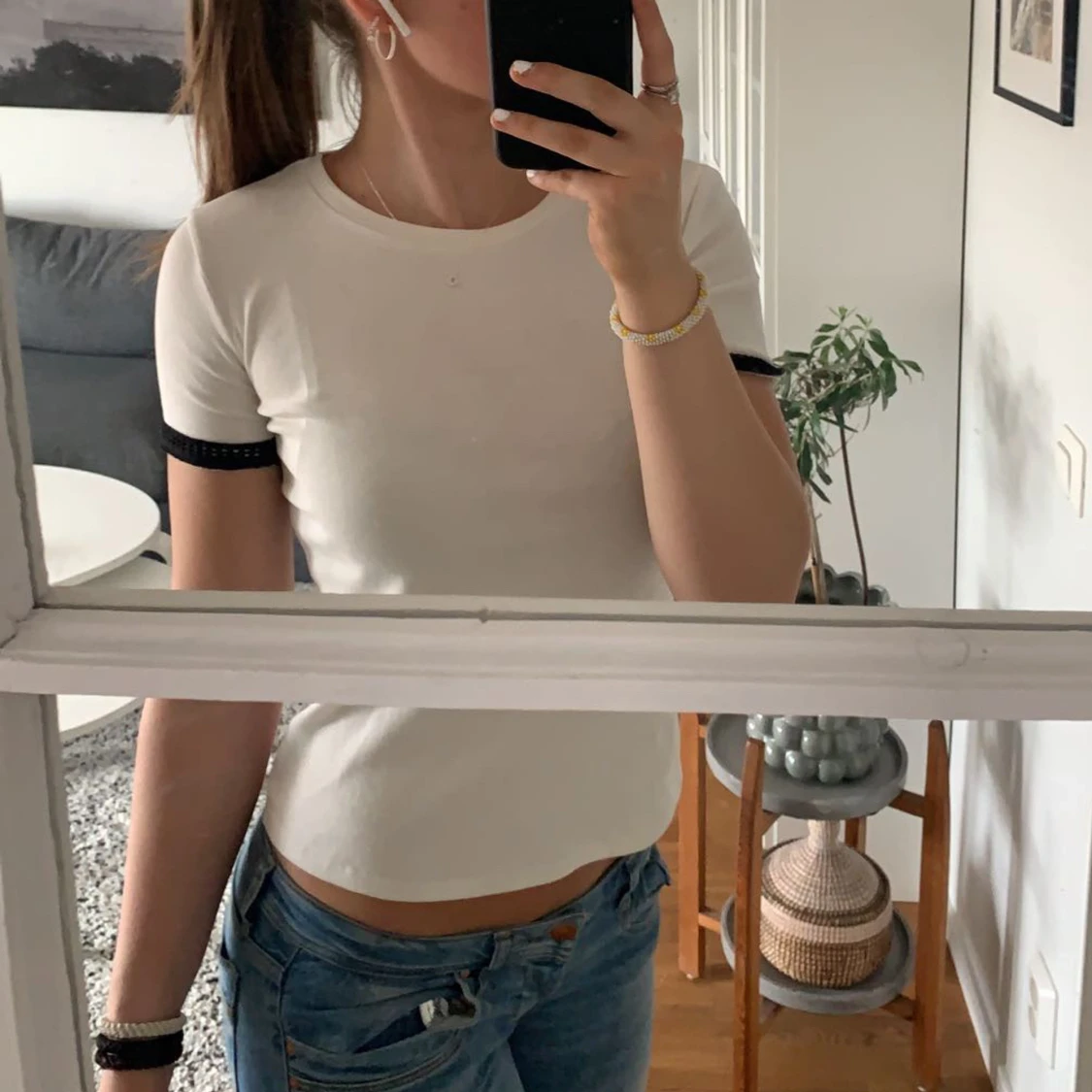 Säljer en as fin basic tisha från zara, virkad detalj i ärmarna. Bra skick
