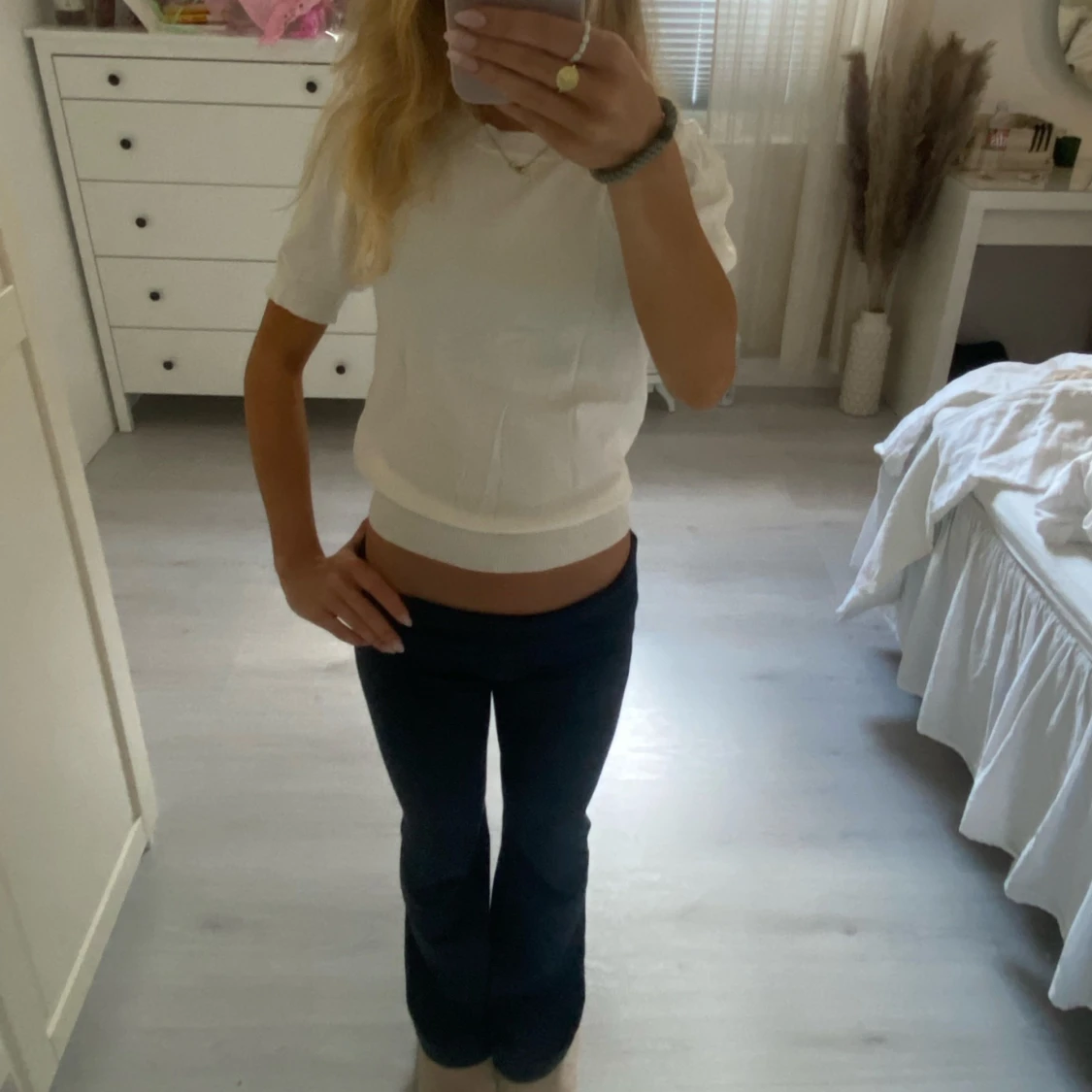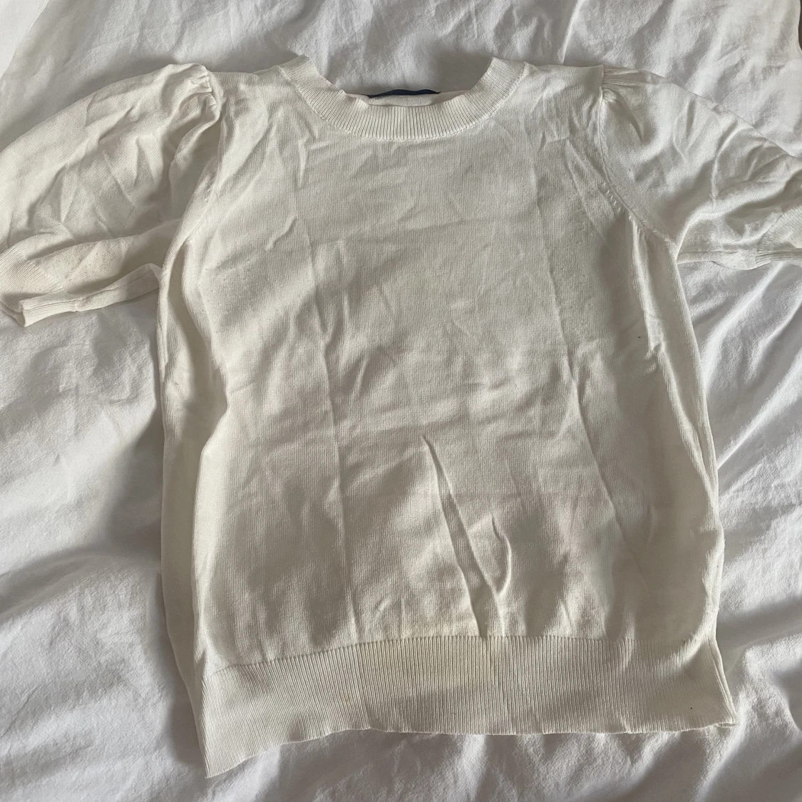 Vit stickad T-shirt i strl Xs! Den har lite små fläckar men annars bra skick, skriv för fler bilder🤍🤍