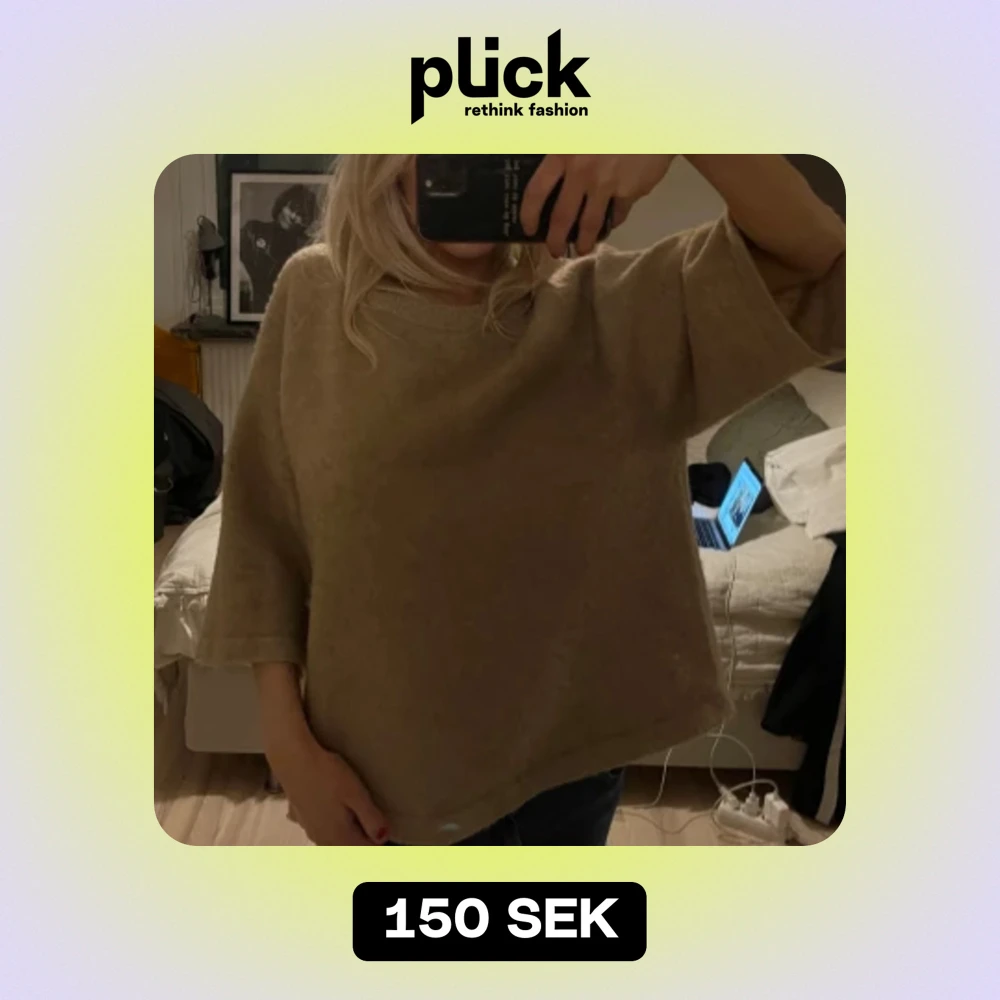 Stickad tröja med trekvartsärmar. Ganska använd därav att blivit nopprig. Stretchigt material. Säljs då den är för stor. Färgen är lite svår att få med på bild🤍🤍💗💗🤍