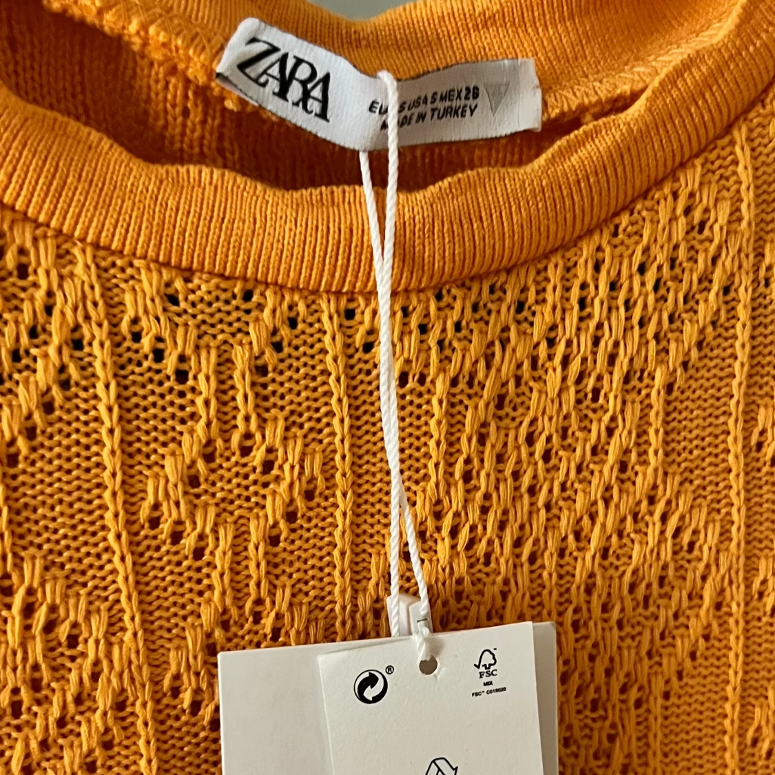 Virkad/stickad tröja från Zara, helt oanvänd med prislapp kvar och säljs inte längre då den köptes 2022. Assnygg till sommaren med en bränna och jeansshorts🧡🧡lägg gärna prisförslag!