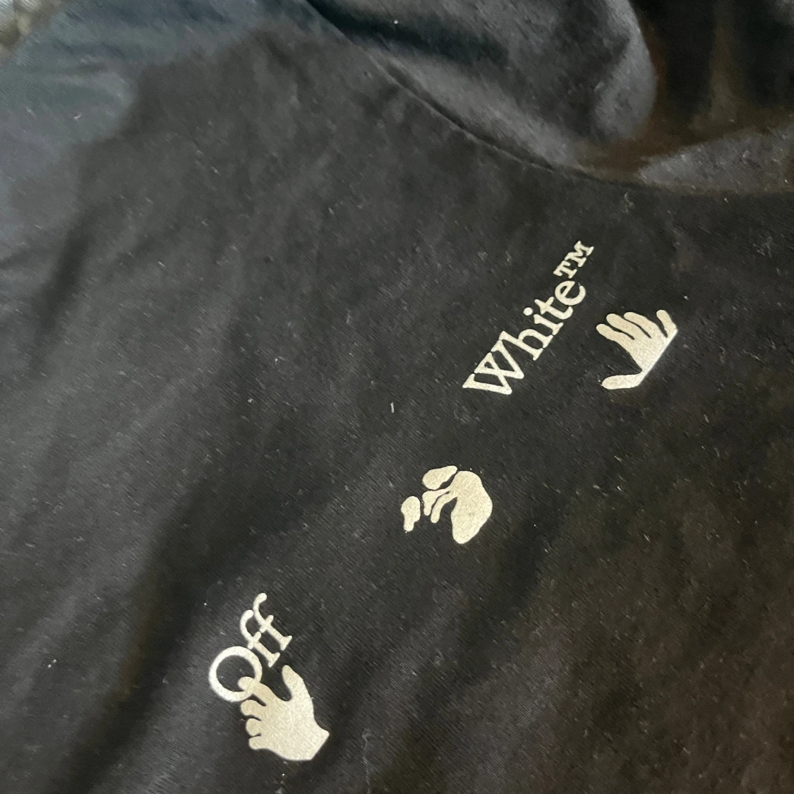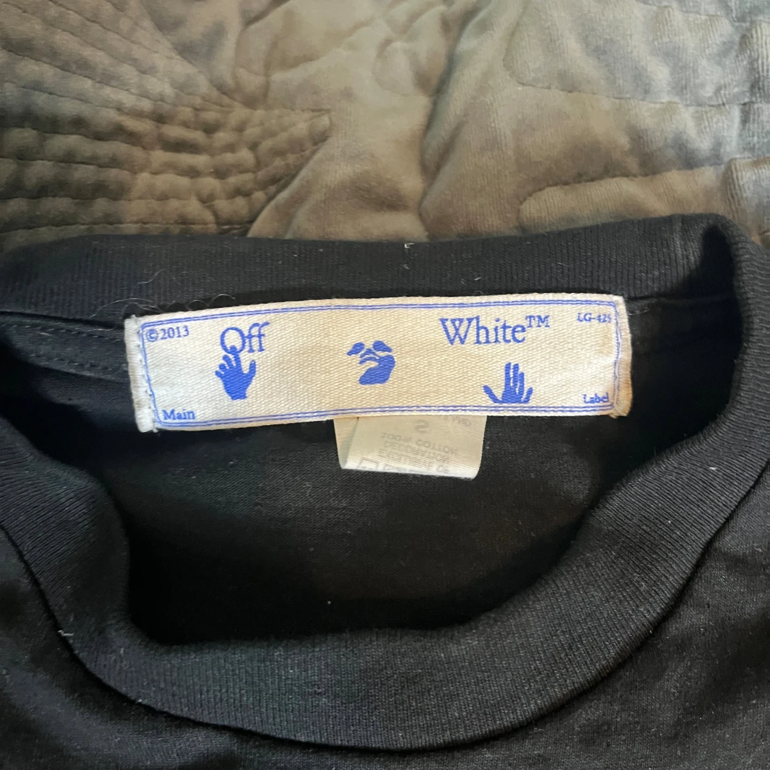 Säljer en stilren jätte snygg off white t-shirt i storlek small. 9/10 skick knappt använd! Den har den klassiska designen på ryggen och är sjukt snygg om man vill sticka ut från allmänheten! Priset ej hugget i sten så kom med förslag!
