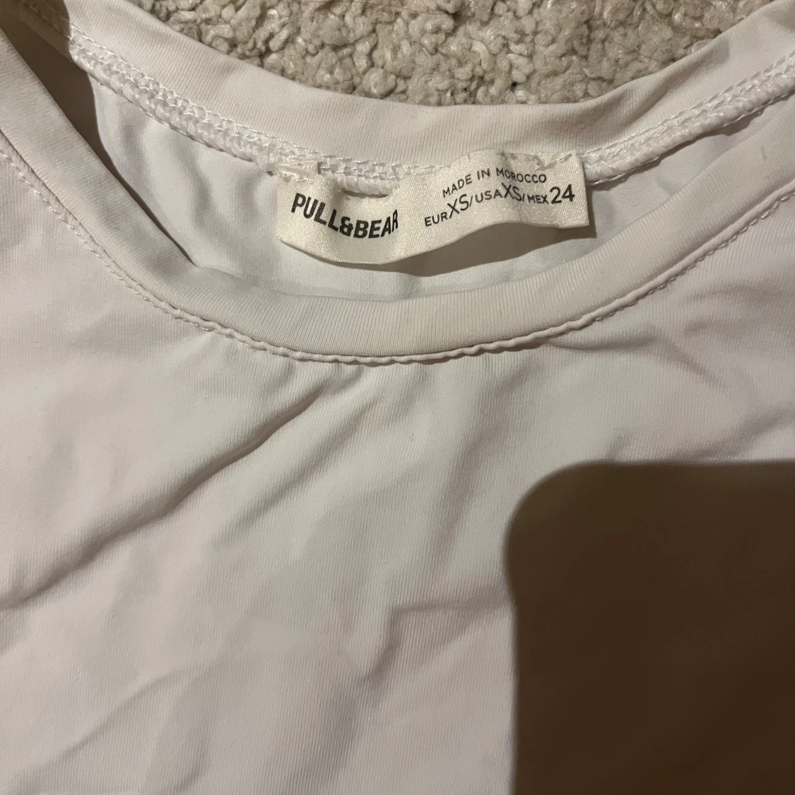 Säljer en klassisk vit t-shirt från Pull&Bear i storlek XS. Perfekt basplagg med korta ärmar och rund hals! Tillverkad i mjukt material för en bekväm passform!!😍😍😍☺️❣️