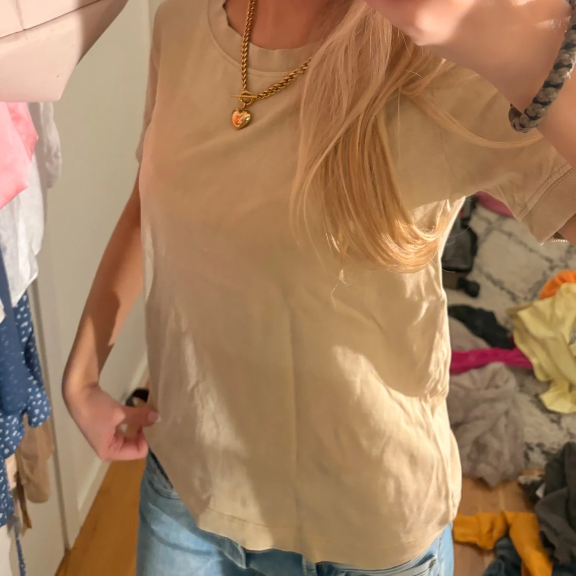 Enkel och stilren beige t-shirt i mjuk bomull. Klassisk rund halsringning och korta ärmar, perfekt till jeans eller shorts. Snygg och clean look som funkar till det mesta.