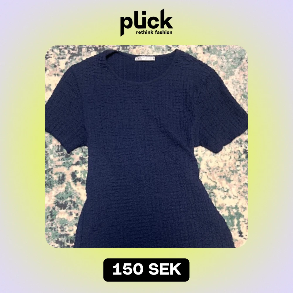 Säljer en superfin mörkblå top från Zara. Den har en cool textur och korta ärmar, perfekt för både vardag och fest.