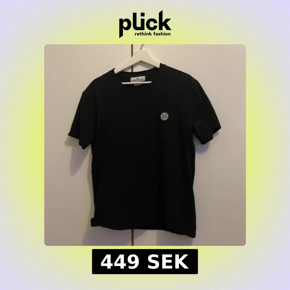 Svart t-shirt från Stone Island med klassisk rund hals och diskret logotyp på bröstet. Varan är använd få antal gånger men inga defekter på nått. Tveka inte på att fråga.