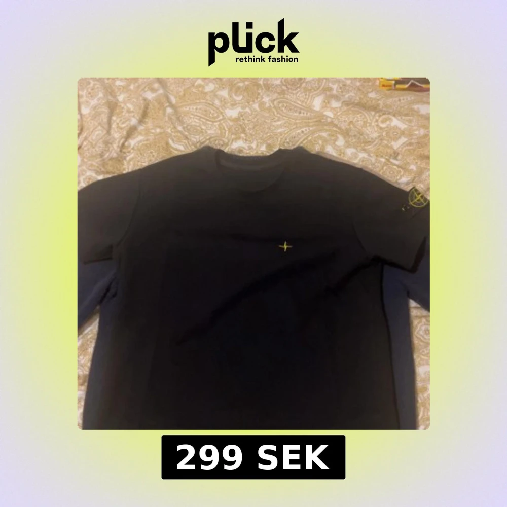 Svart t-shirt från Stone Island med klassisk rund hals och korta ärmar. På bröstet finns en liten gul broderad detalj och på vänster ärm sitter den ikoniska Stone Island-loggan i gult. Perfekt för dig som gillar stilrena och exklusiva plagg. Skriv för fler bilder eller funderingar.