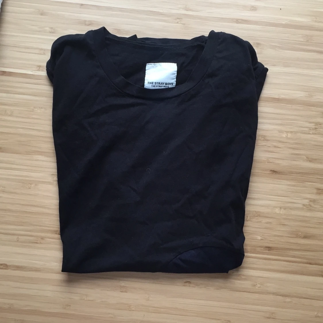 Svart t-shirt med blå prick från the stray boys. I princip oanvänd. Köpt på herravdelning, märkt med XS men passar även S