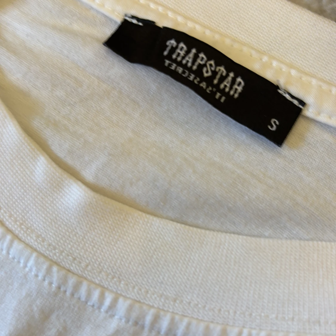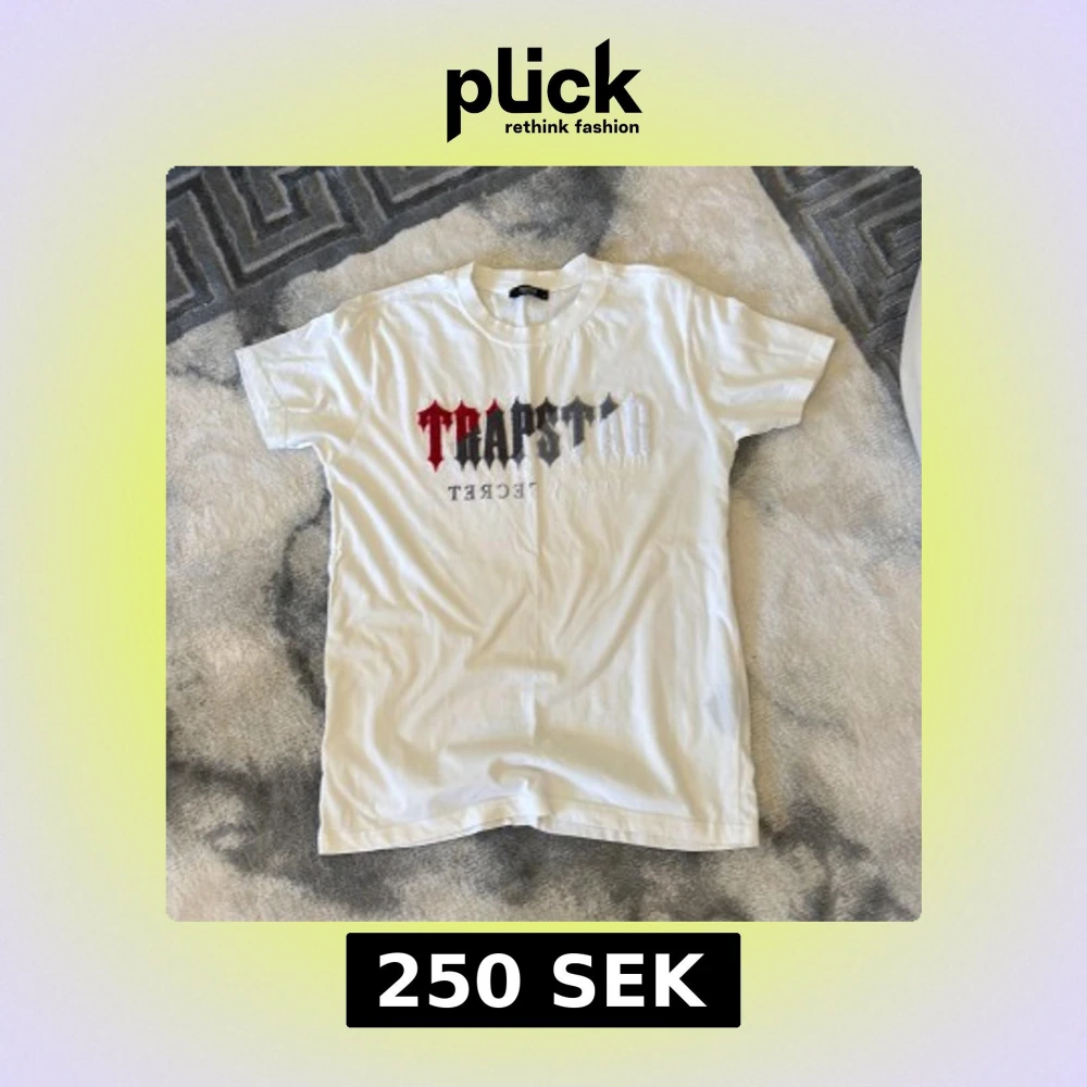 Vit t-shirt från Trapstar med ikoniskt tryck i rött, svart och grått på bröstet. Klassisk rund hals och korta ärmar. Tillverkad i 100% bomull för en skön och avslappnad känsla. Perfekt för dig som gillar streetwear och vill sticka ut.
