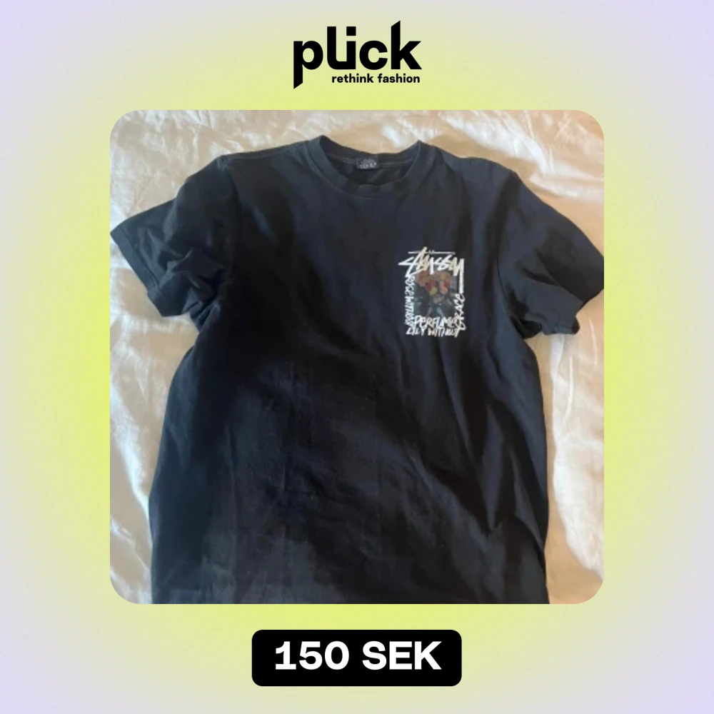 En snygg och enkel stussy t shirt i storlek M! I väldigt bra skick och passar mig utmärkt som är runt 188😁