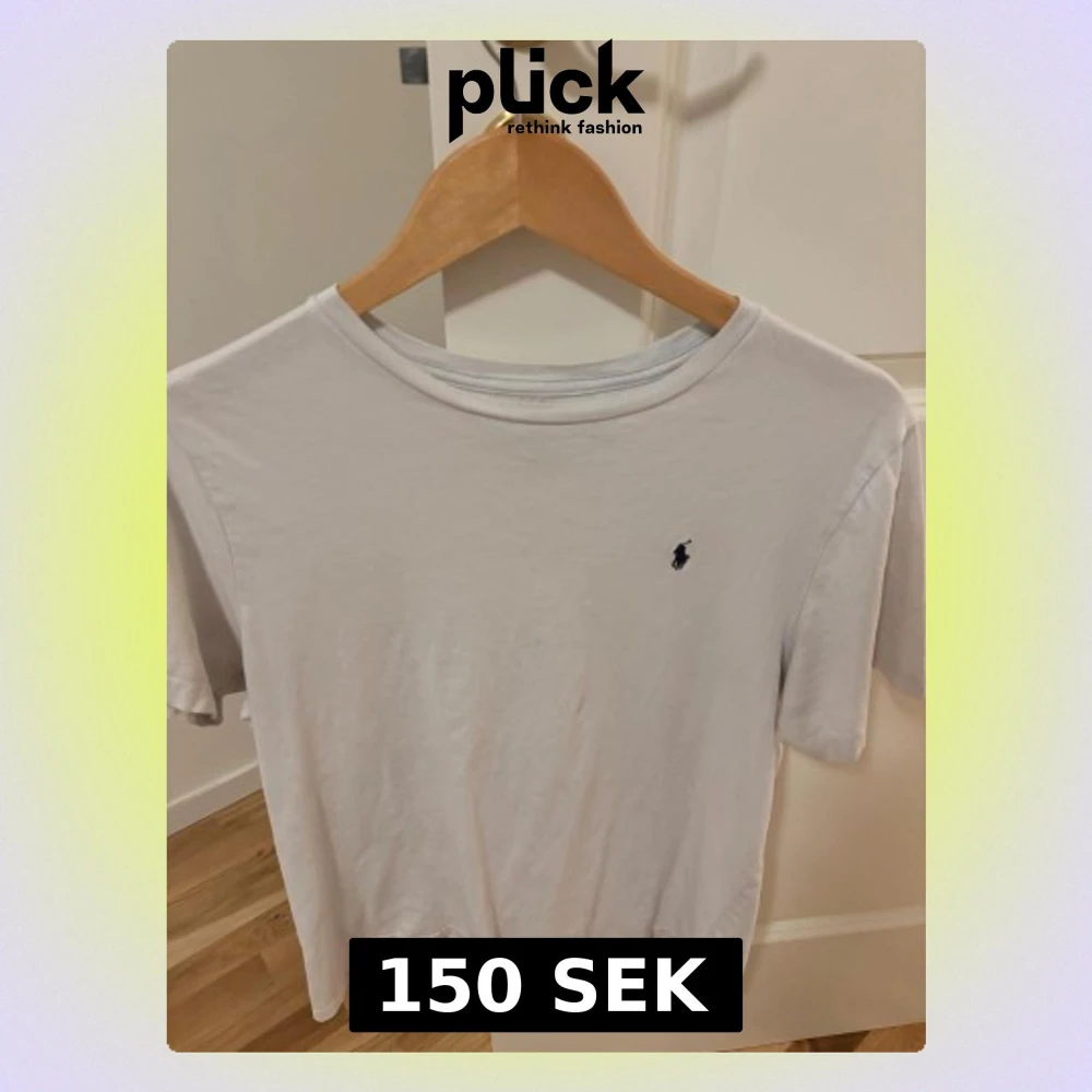 Vit t-shirt från Polo Ralph Lauren i storlek XL. Klassisk design med rund hals och korta ärmar. På bröstet finns den ikoniska broderade Polo-loggan i mörkblått. Tillverkad i mjuk bomull som är skön mot huden. Perfekt för en clean och stilren look.