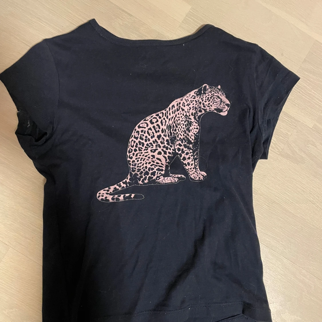 Jättefin mörkblå/svart tight t-shirt från subdued med rosa leopard tryck💗