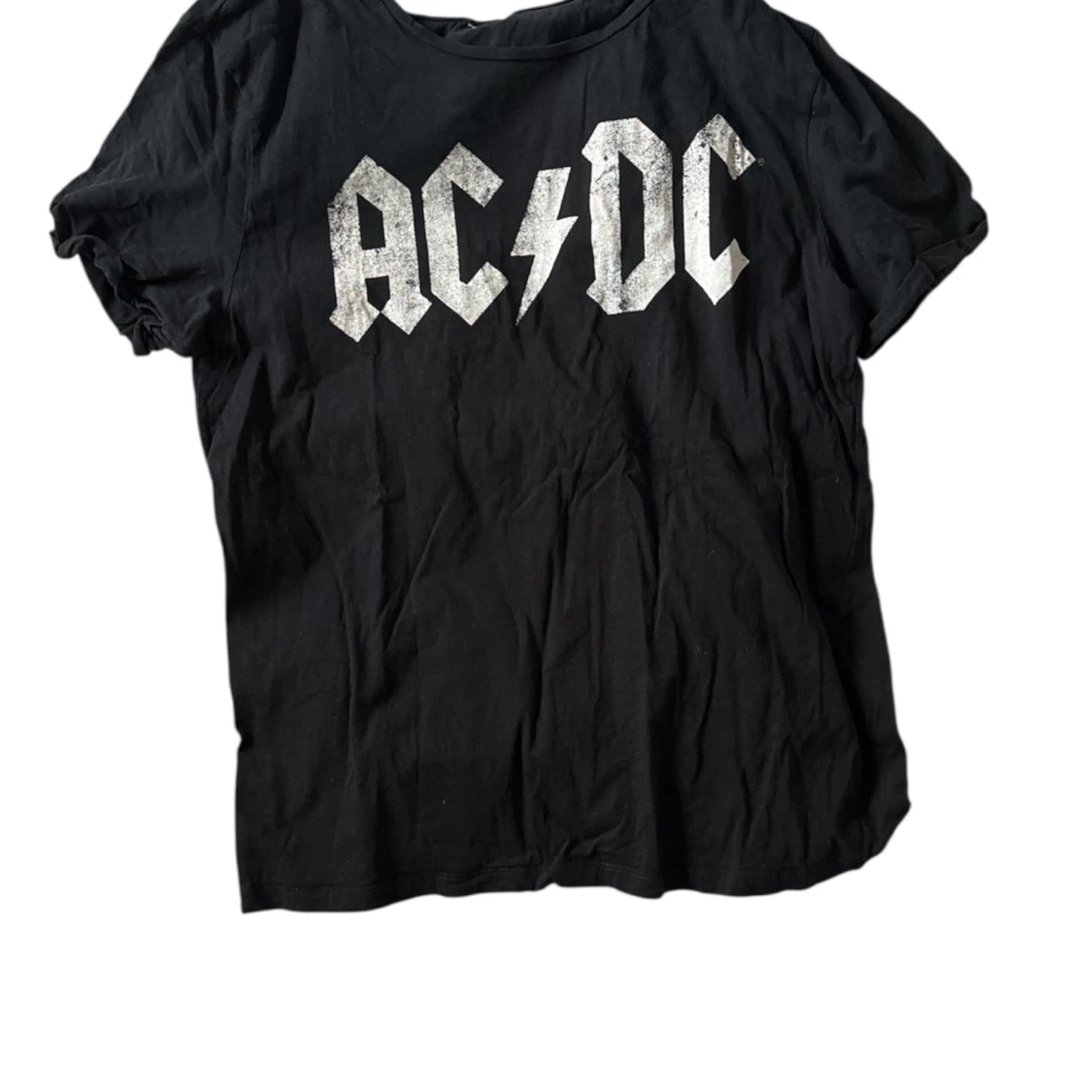 Svart t-shirt med stort AC/DC-tryck i vitt framtill. Klassisk rund hals och korta ärmar. Perfekt för dig som gillar rock och vill ha en avslappnad stil. Tillverkad i mjuk bomull för skön känsla hela dagen.