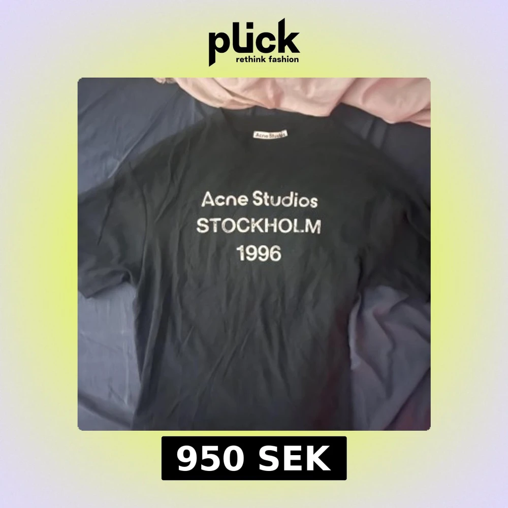 Svart t-shirt från Acne Studios med vit text 'Acne Studios STOCKHOLM 1996' på bröstet. Klassisk rund hals och korta ärmar. Materialet är mjuk bomull och passformen är normal. Perfekt för dig som gillar stilrena och ikoniska plagg. Passar runt 170-180 ungefär