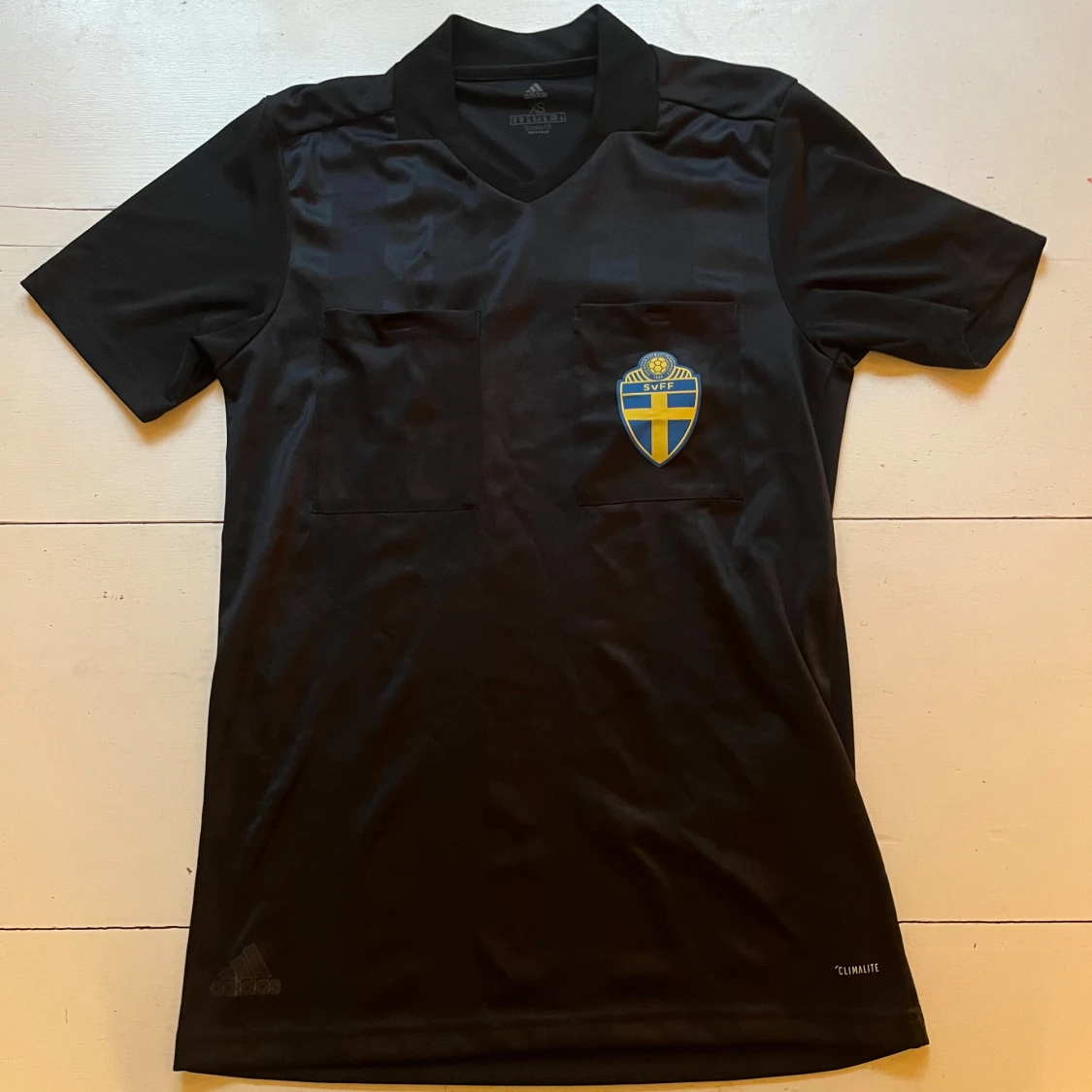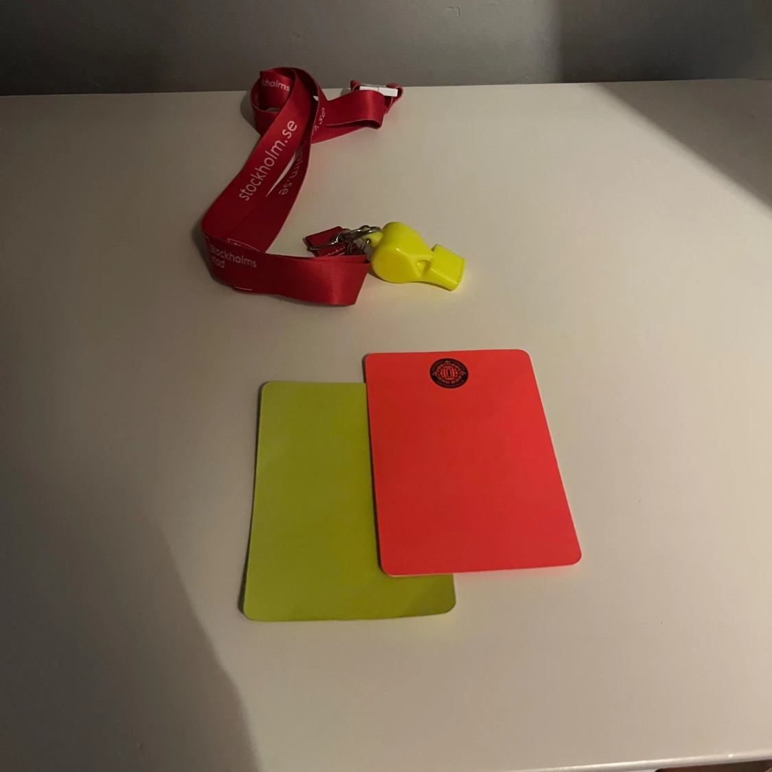 Fin donartröja med två fickor för kort och anteckning. Sparsamt använd under min egna domarkarriär. Nu är det dags för någon annan att få använda den. Köpt på unistore och är av märket Adidas. Det ingår annan utrustning så som rött och gult kort samt visselpipa Storlek Xs passar bra på båda barn och vuxna som är runt 160-170. Perfekt för att påbörja domarkarriären.
