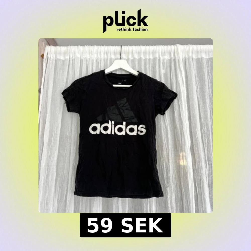 Svart t-shirt från Adidas med stor vit och svart logga framtill. Klassisk rund hals och korta ärmar. Skön passform och tillverkad i mjuk bomull, perfekt för en sportig look.