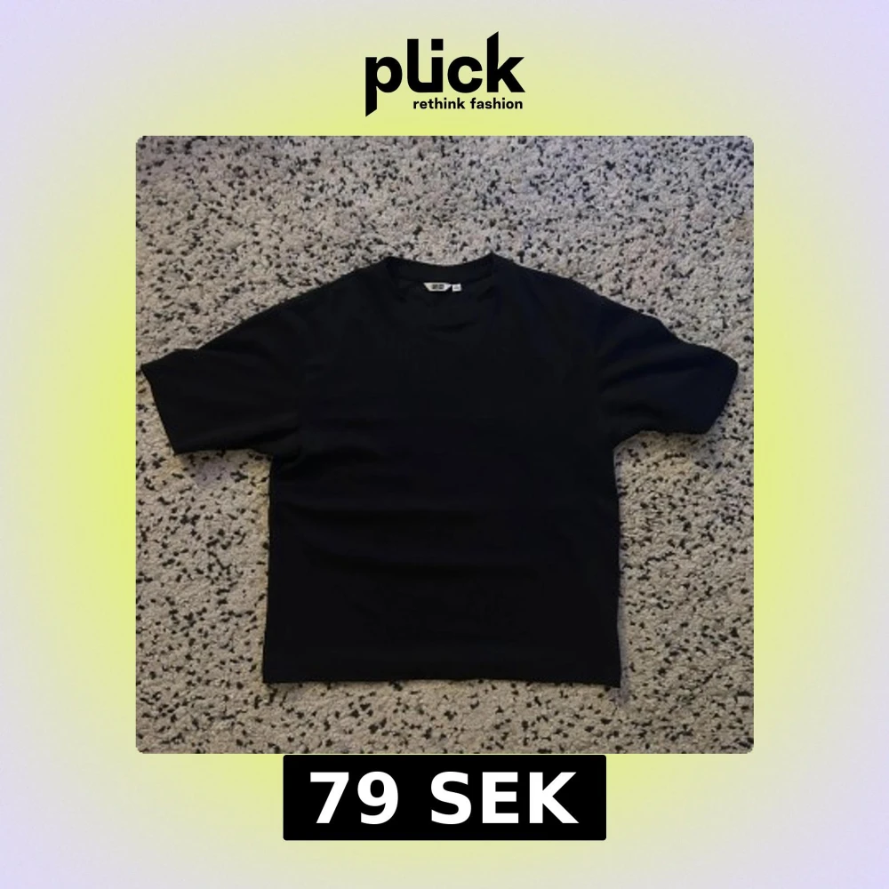 Säljer en klassisk svart t-shirt från Uniqlo i storlek S. T-shirten är kortärmad och tillverkad i ett mjukt material, perfekt för en stilren look.