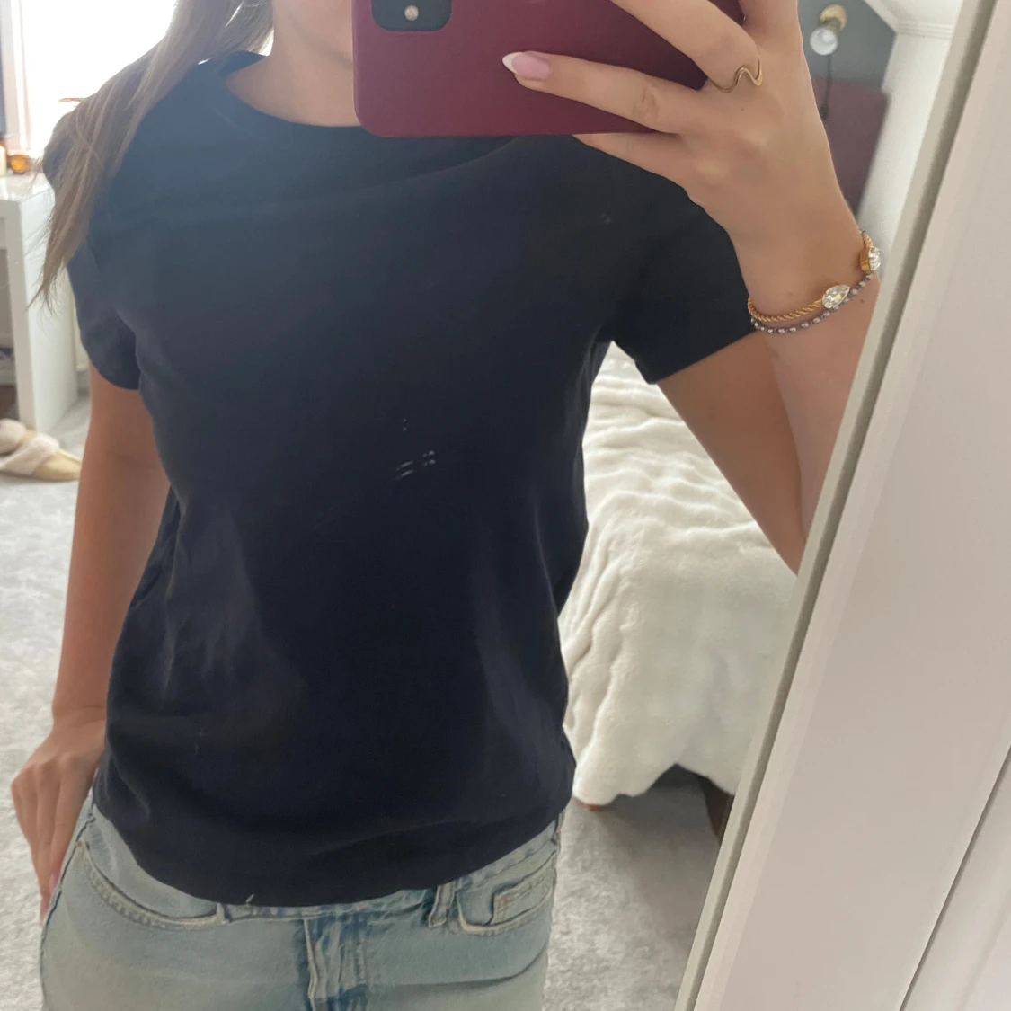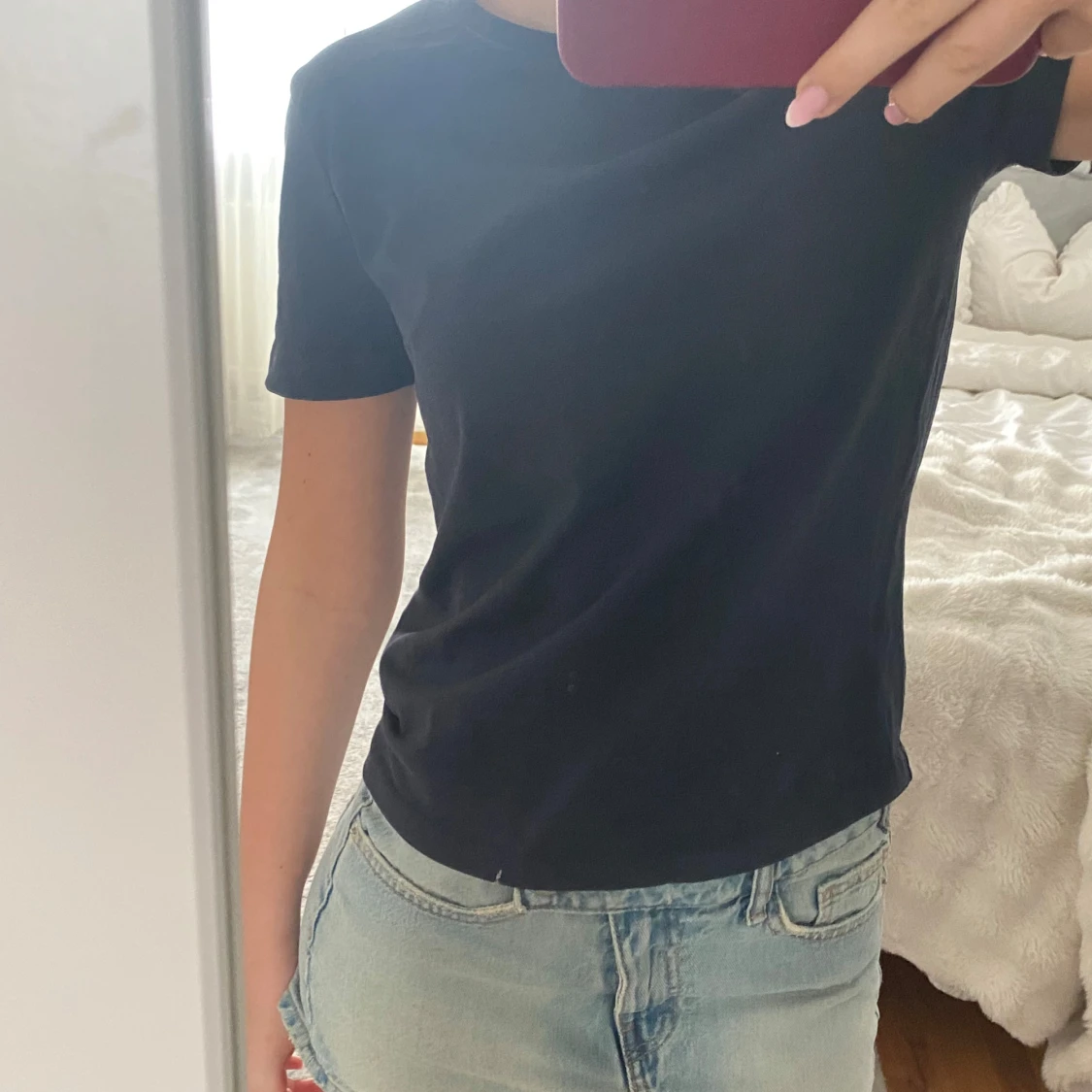 En enkel svart t-shirt med rund halsringning och korta ärmar. Modellen är normal i passformen och passar perfekt till jeans eller shorts. Gjord i mjukt bomullsmaterial för en bekväm känsla hela dagen.