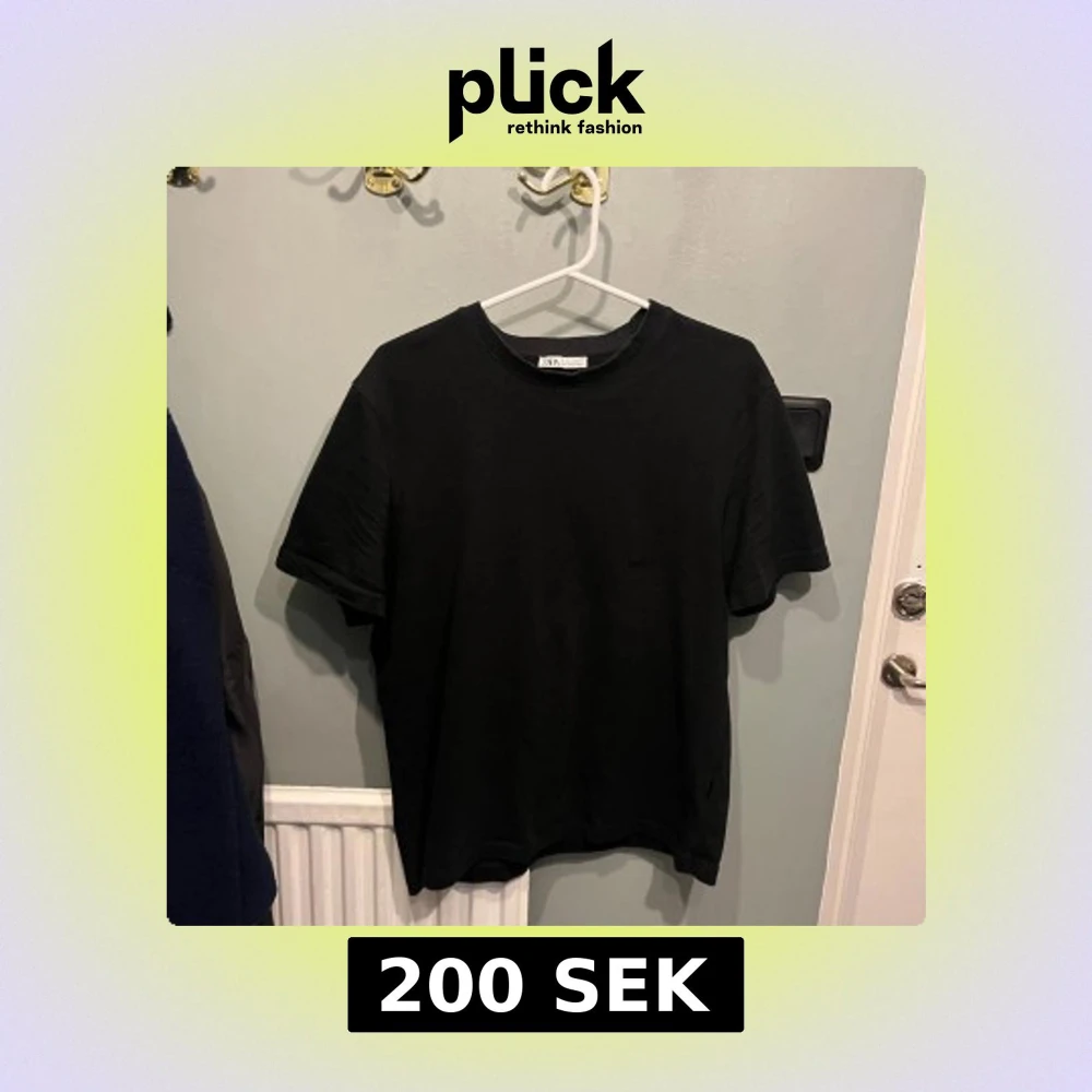 En stilren svart t-shirt från Zara i klassisk modell. T-shirten har rund halsringning och korta ärmar, perfekt för en clean och enkel look. Tillverkad i mjuk bomull som känns skön mot huden. Storlek M men lite tightare passform.