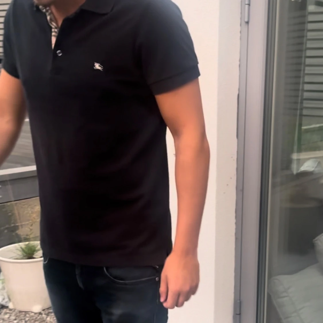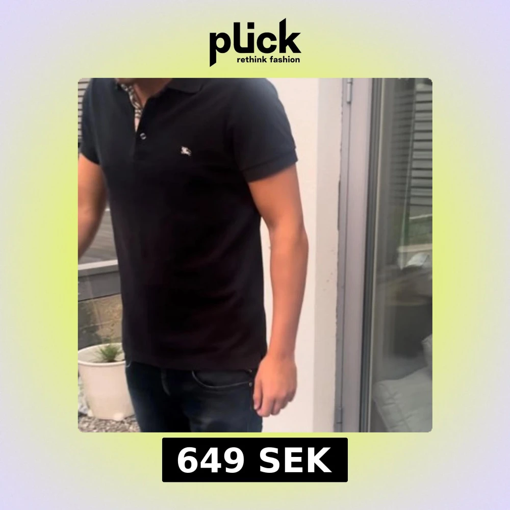 Säljer en svart t-shirt från Burberry med klassisk pikékrage och korta ärmar. Pikén har en liten Burberry-logga på bröstet och knappslå vid halsen. Perfekt för dig som gillar stilrena och tidlösa plagg med premiumkänsla.