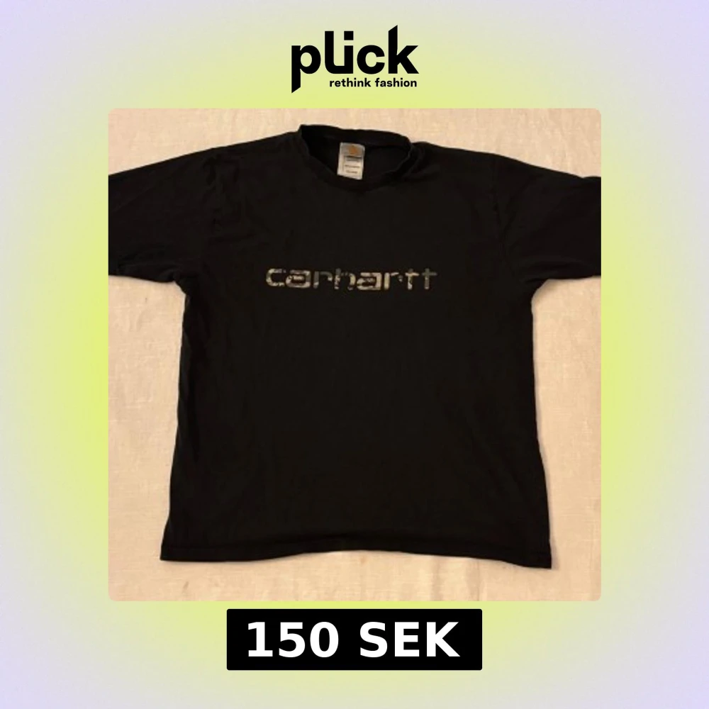 Svart t-shirt från Carhartt med tryckt logga i camo-stil på bröstet. 100% bomull. Storlek L, men passar som M.