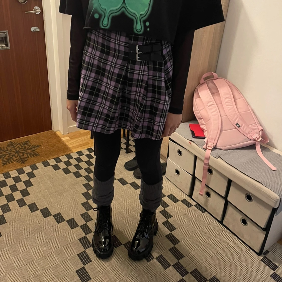 Svart croppad t-shirt med grön tryck
