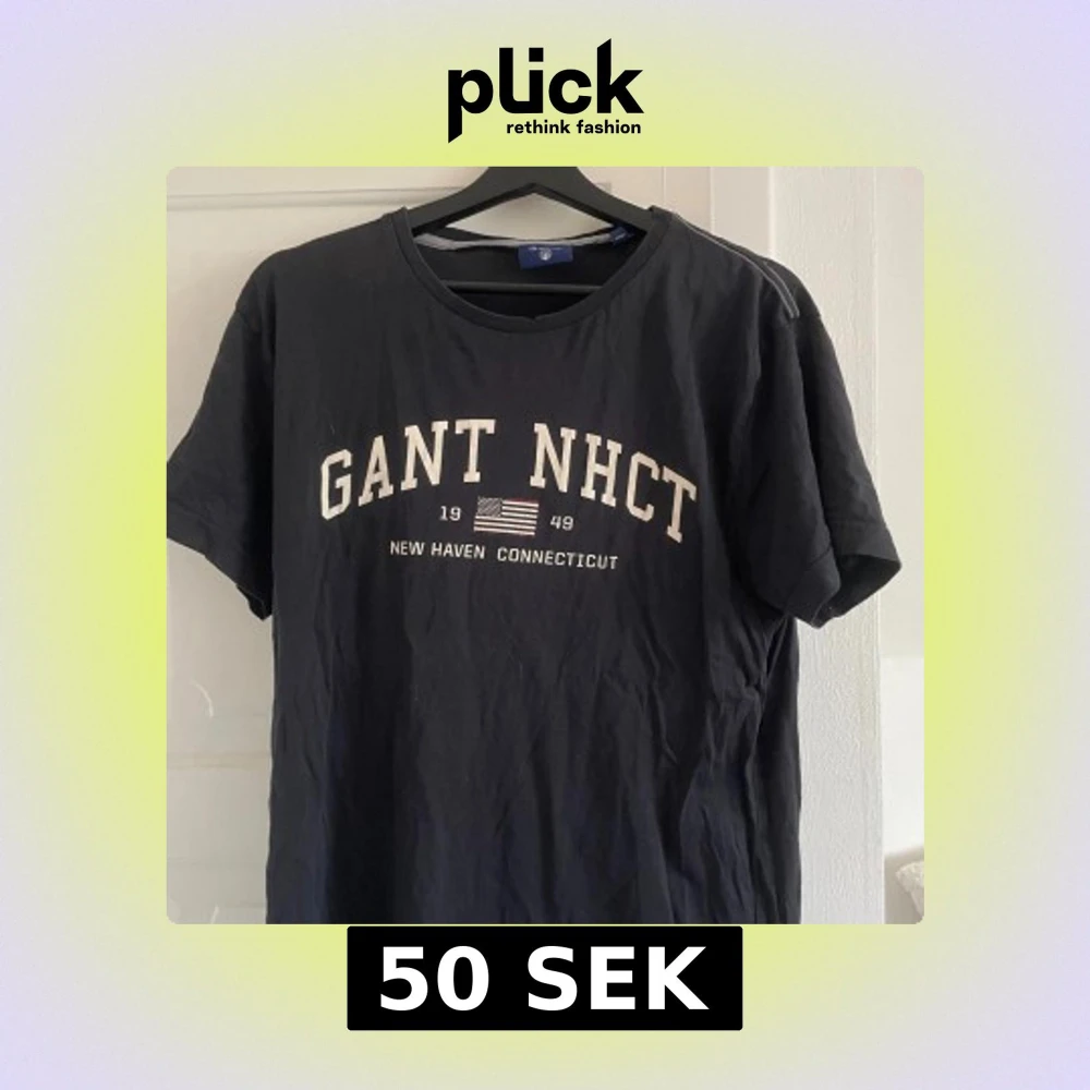 Snygg svart t-shirt från GANT med stort vitt tryck på bröstet där det står 'GANT NHCT' och en amerikansk flagga. Rund hals och klassisk passform, perfekt för dig som gillar college-stil. Materialet är mjuk bomull.