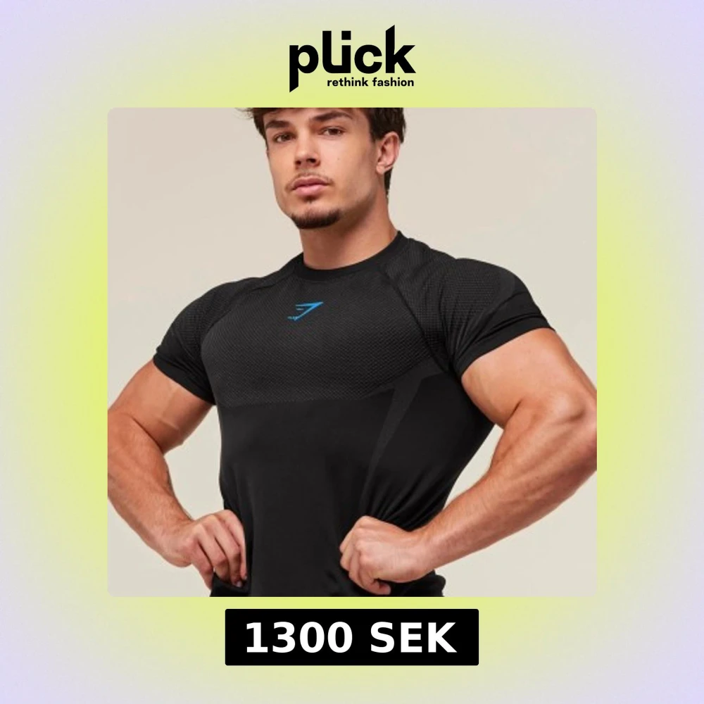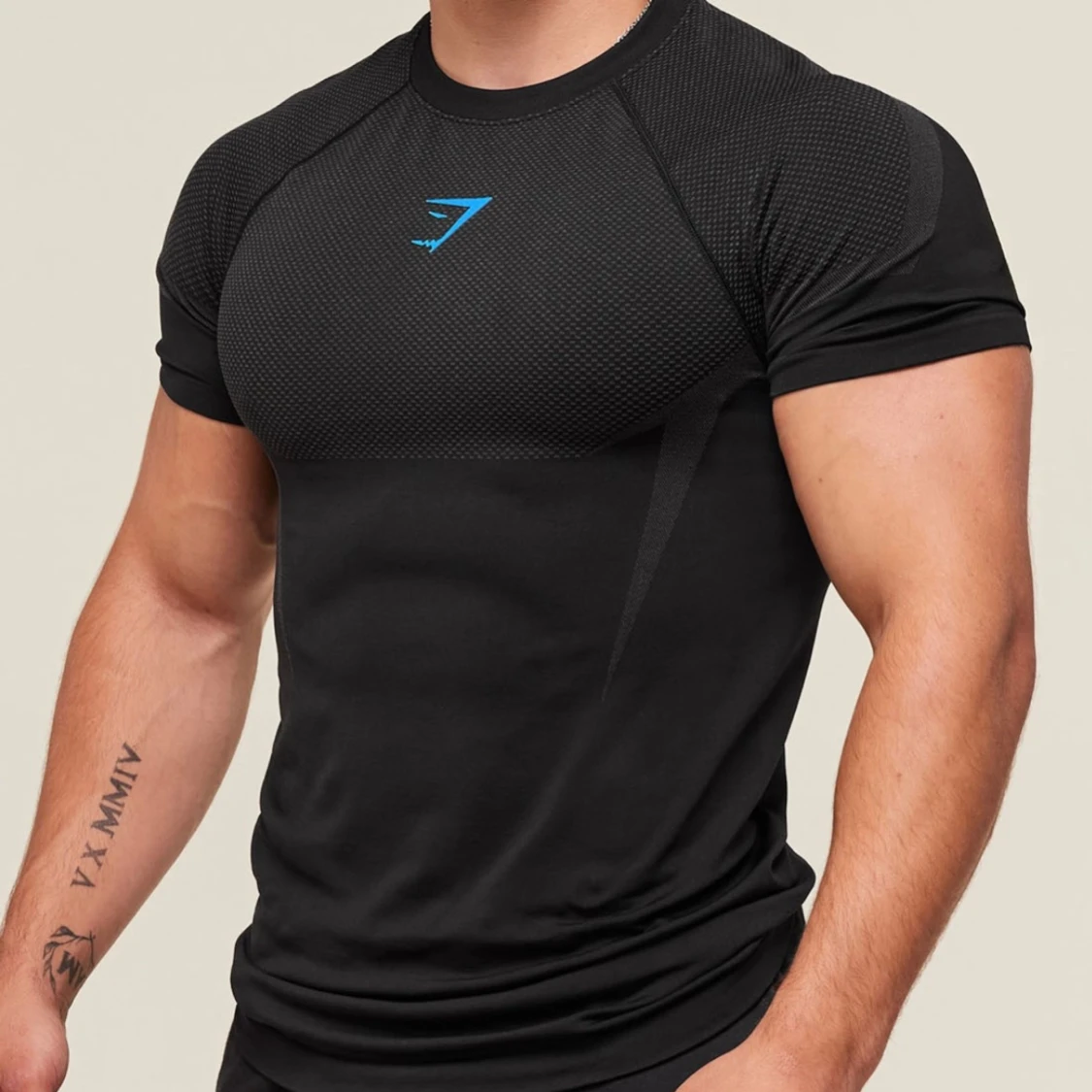 Svart Gymshark Onyx 5.0 seamless t-shirt med tight passform och korta ärmar. T-shirten har diskreta grå detaljer och blå Gymshark-logga på bröstet. Tillverkad i ett stretchigt syntetmaterial som andas, perfekt för träning och gym.