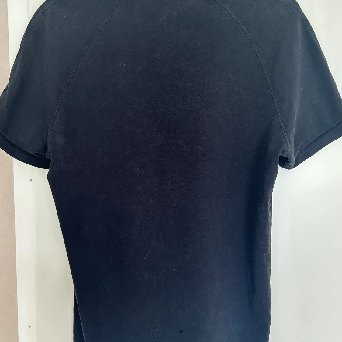Svart t-shirt från Gymshark med broderad logga på bröstet. Klassisk rund halsringning och korta ärmar. Tillverkad i mjuk bomull, perfekt för gymmet eller chill. Enkel och stilren design som funkar till det mesta. Liten defekt bakom tröjan, man kan sy ihop det enkelt därav priset
