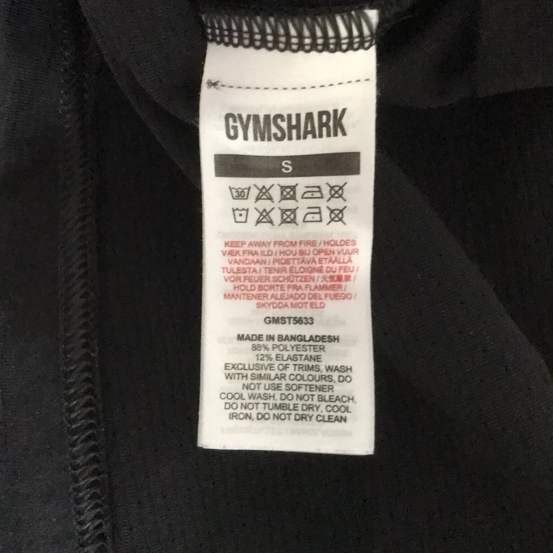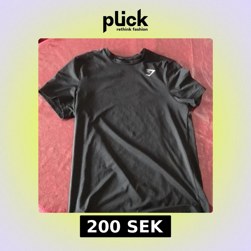 Svart t-shirt från Gymshark i storlek S. Stilren design med Gymshark-logga i vitt på bröstet. Tillverkad i mjuk och stretchig polyesterblandning som sitter skönt mot kroppen. Perfekt för dig som gillar sportig och enkel stil.