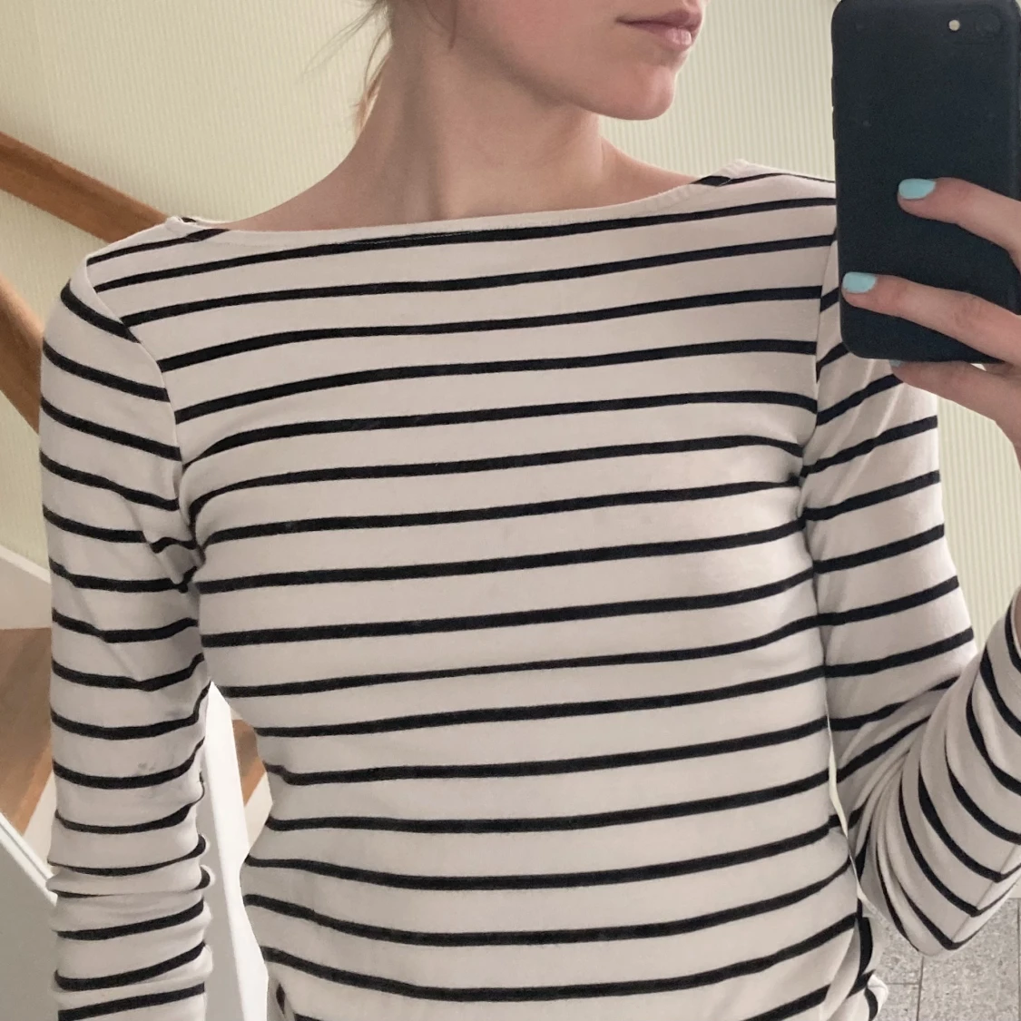 Långärmad tröja, superstretchig och nästan aldrig använd. Jättefin off white med svarta ränder.