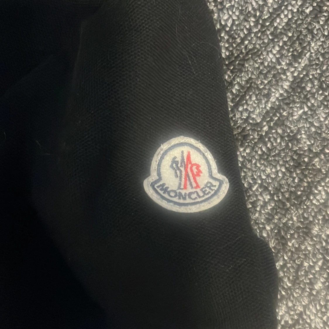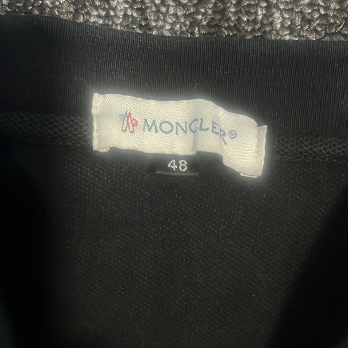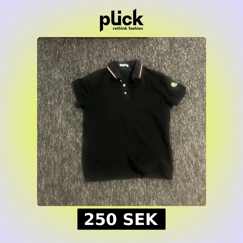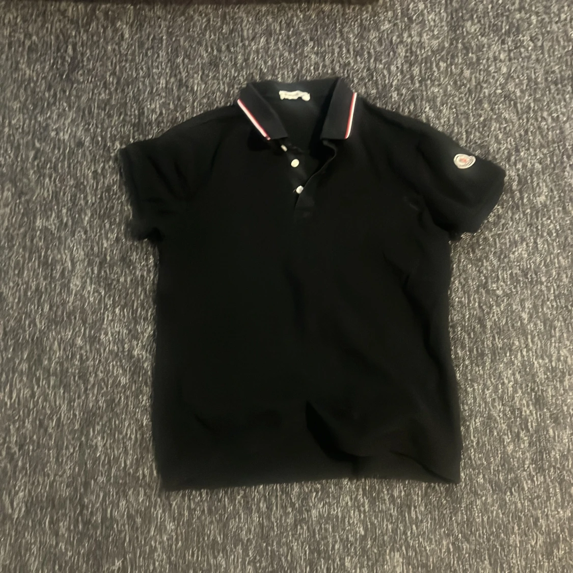 Snygg svart pikétröja från Moncler med korta ärmar och klassisk krage. Tröjan har knappar framtill och en diskret logga på ärmen. Perfekt för en stilren look.