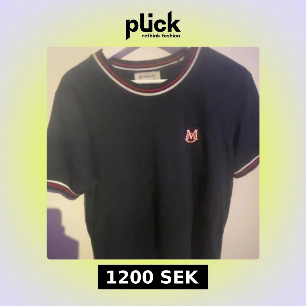 Svart t-shirt från Moncler i storlek M. Snygga ribbade detaljer med vita och röda ränder vid halsringning och ärmslut. Liten broderad Moncler-logga på bröstet. Klassisk passform och mjukt bomullsmaterial som känns skönt mot huden.