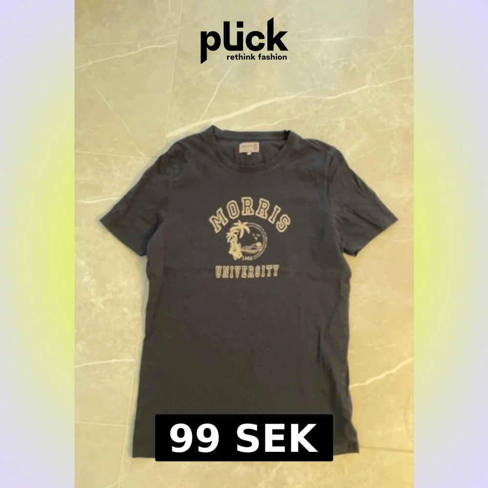 Svart t-shirt från Morris i storlek L med klassiskt tryck 'Morris University' och palmmotiv på bröstet. Rund hals och korta ärmar. Skön och mjuk bomullskvalitet som passar perfekt till jeans eller shorts. Snyggt college-inspirerat plagg för en chill look.