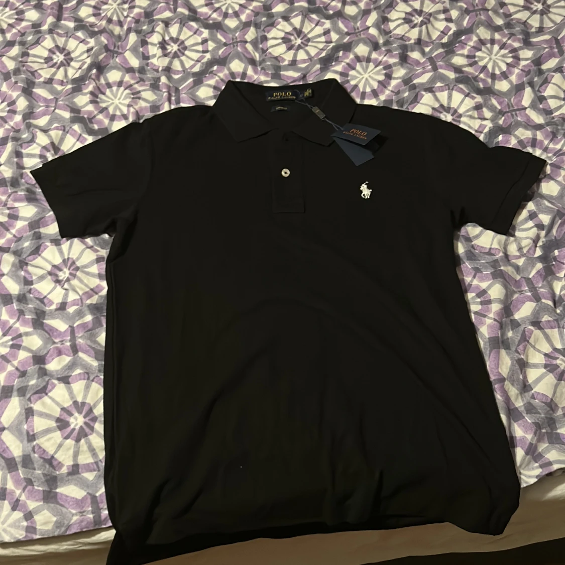 Klassisk svart pikétröja från Polo Ralph Lauren med vit broderad logga på bröstet. Tröjan har korta ärmar, krage och knäppning med två knappar. Tillverkad i mjuk bomull som känns skön mot huden. Perfekt för en clean och stilren look.