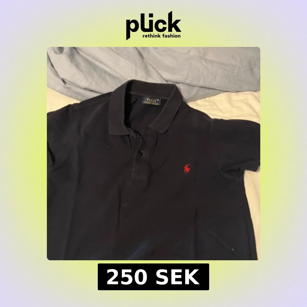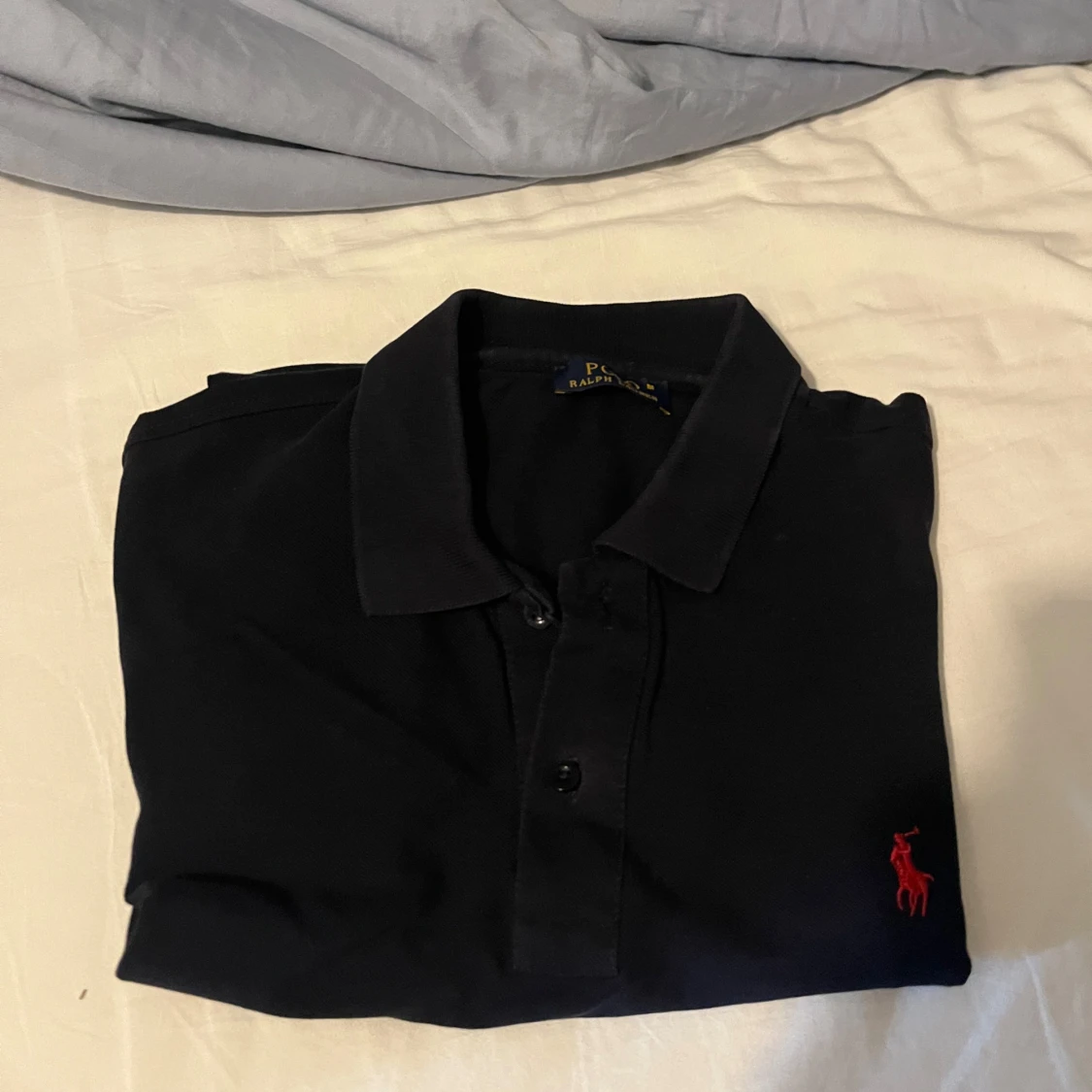 Klassisk svart pikétröja från Polo Ralph Lauren med röd broderad logga på bröstet.