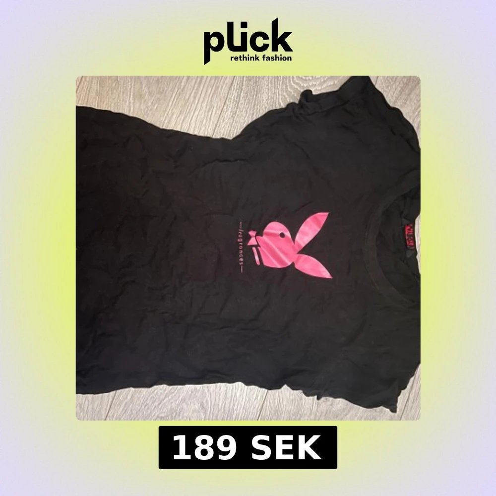 Svart t-shirt från Playboy med ikoniskt rosa kanintryck på bröstet och texten 'fragrances'. Klassisk rund hals och korta ärmar. Perfekt för dig som gillar streetstyle och vill sticka ut med en cool logga.