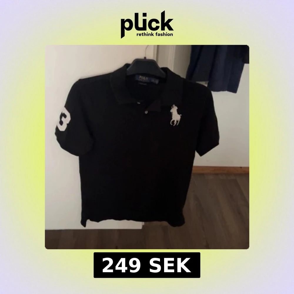 Svart t-shirt från Polo Ralph Lauren med klassisk passform och korta ärmar. Stor vit logga med häst på bröstet och en vit siffra 3 på ena ärmen. Snygg krage och knäppning framtill. Perfekt för dig som gillar stilrena märkesplagg.