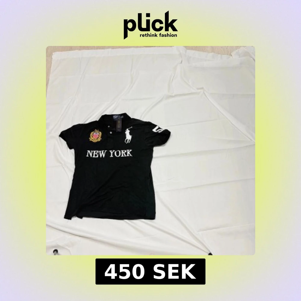 Svart t-shirt från Polo Ralph Lauren med broderad logga, New York-tryck och stort nummer 5 på ryggen. Klassisk pikékrage och korta ärmar. Materialet är mjuk bomull och detaljerna är broderade i vitt och guld. Perfekt för dig som gillar sportig och stilren look.